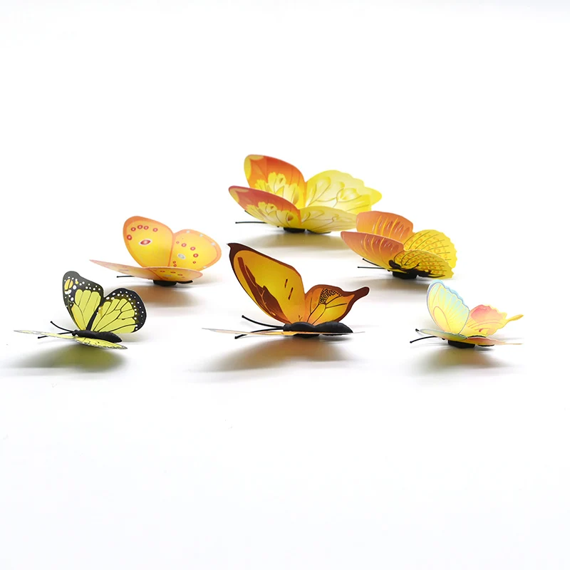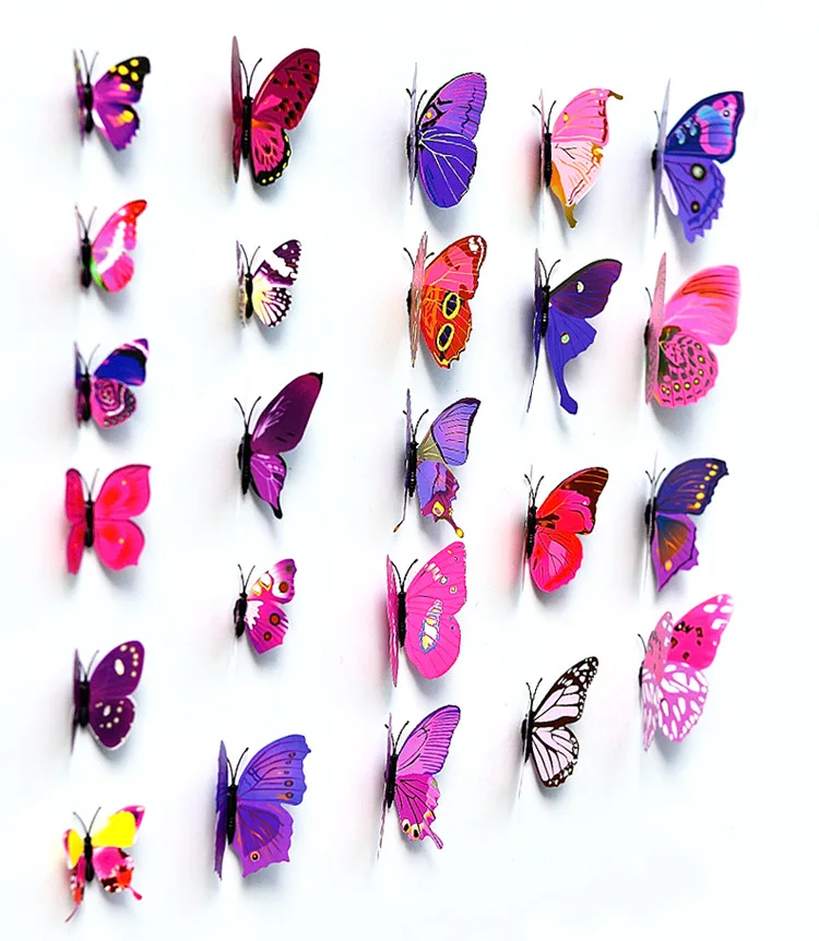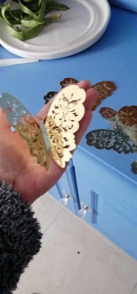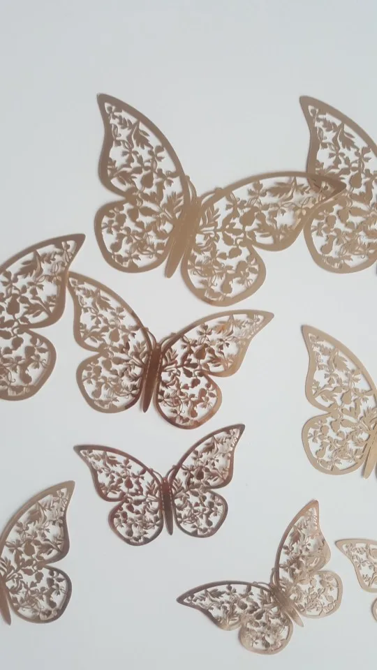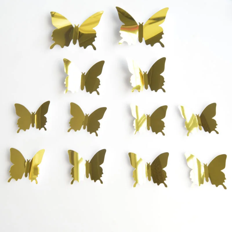 12 шт.компл., 3D наклейки на стену, полые бумажные бабочки, 3 размера, серебристые золотистые наклейки на холодильник, наклейки для дома, вечерние, свадебные, сделай сам, Декор