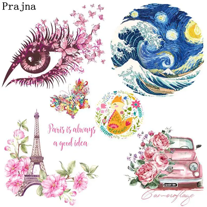 Prajna переводная картина с глазным яблоком бабочкой утюгом переводная картина с Парижской башней теплопередающие виниловые термонаклейки Летний стиль на футболку сделай сам