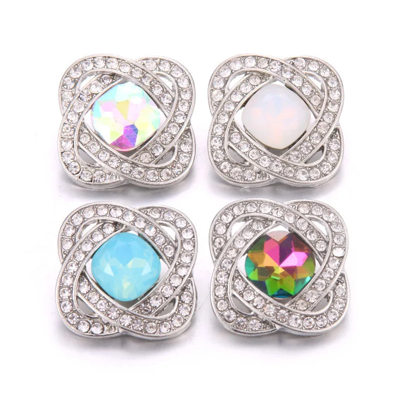 10 шт.лот Новые оснастки ювелирные изделия 4 вида цветов квадратный цветок кристалл горный хрусталь Металлические Кнопки для 18 мм оснастки браслет с кнопками