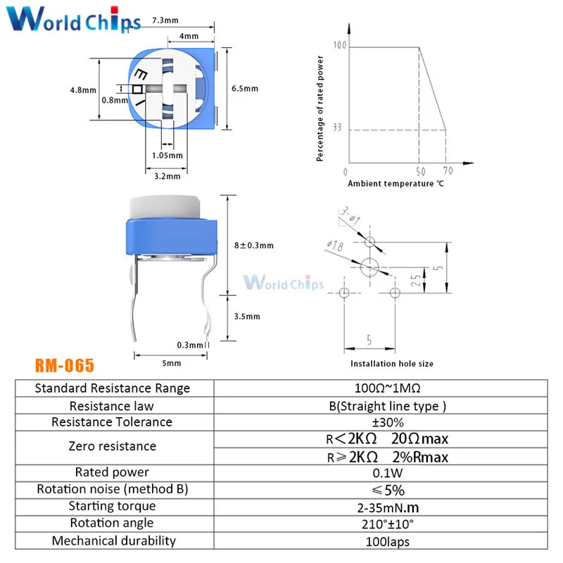 10 шт.лот RM065 100 200 500 Ом 1 к 2 к 2,2 К 3 к 3,3 к 5 к 10 к 20 ...