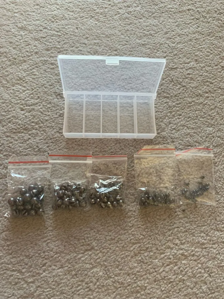 Хороший набор. Коробочка упакована в пакет зип-лок и ещё каждый сет грузил внутри в отдельном пакетике, чтобы не рассыпались случайно. Обжимать грузила можно пальцами.