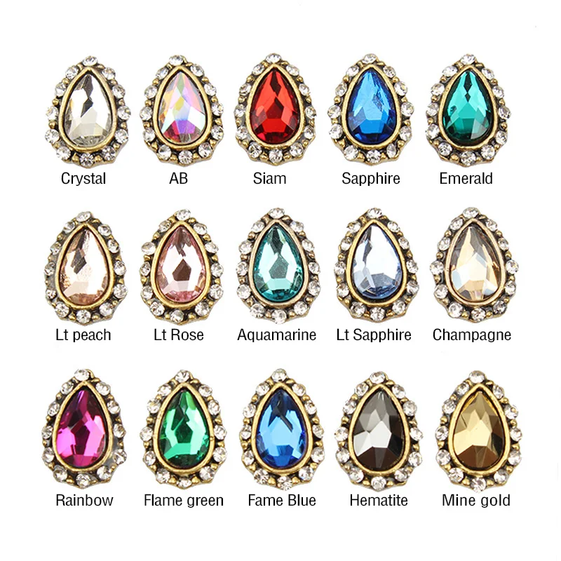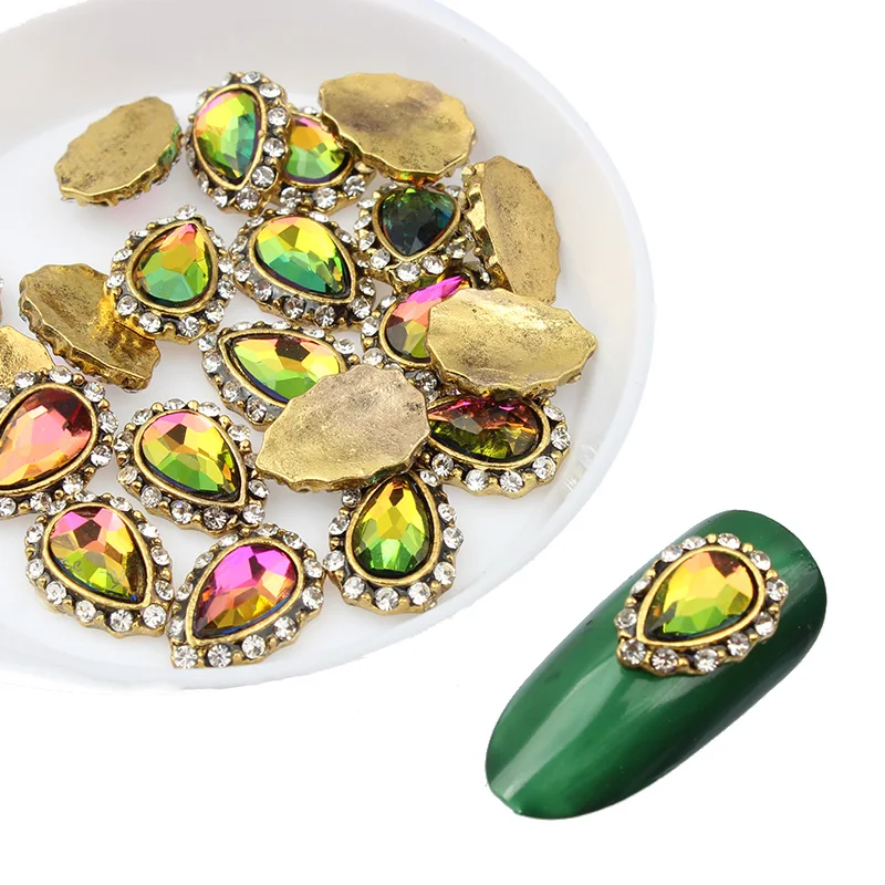 10 шт.лот Античная капля воды сплав 3d дизайн ногтей Декор ногтей Очаровательные Кристаллы бриллианты Камень Стразы украшения Стразы