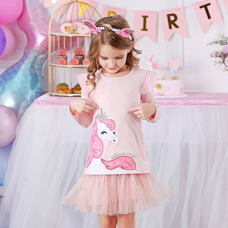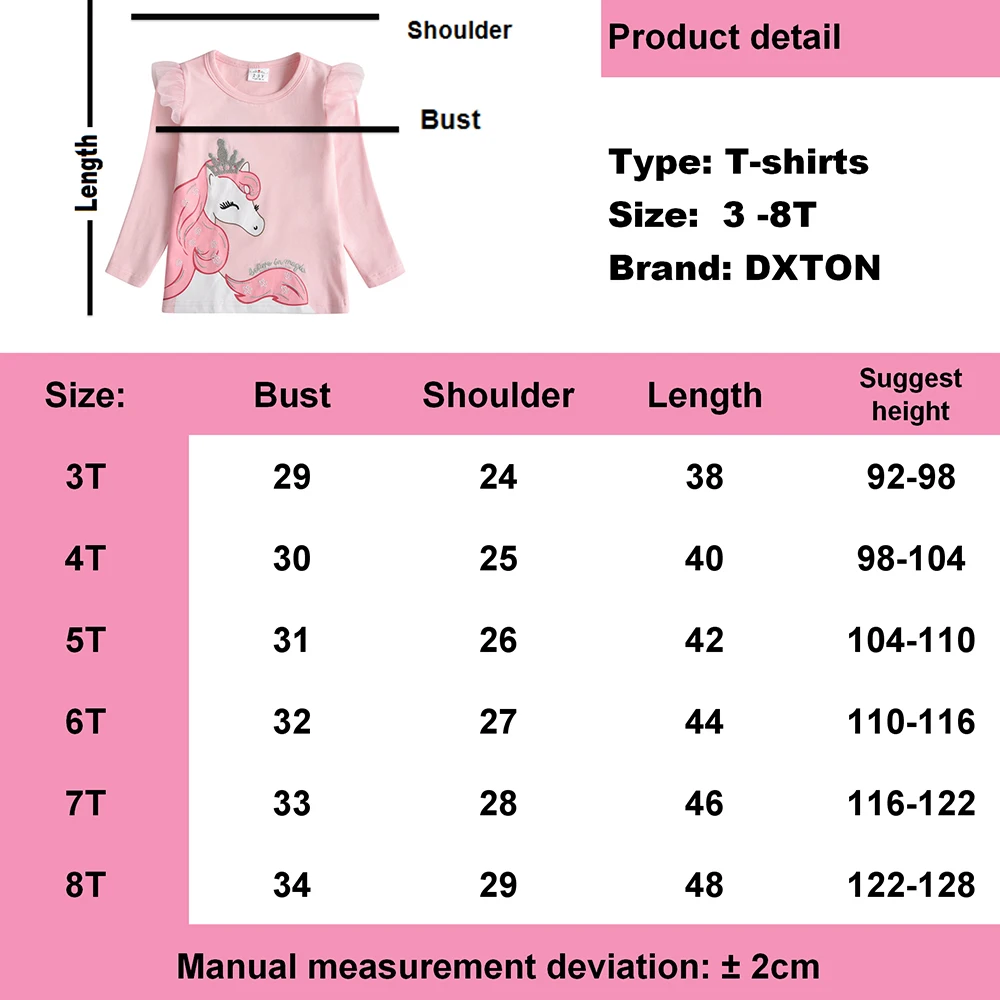 Dxtonфутболка для маленьких девочек футболка с длинными рукавами для детей, футболки с аппликацией единорога, хлопковая детская зимняя одежда костюм с героями мультфильмов для девочек