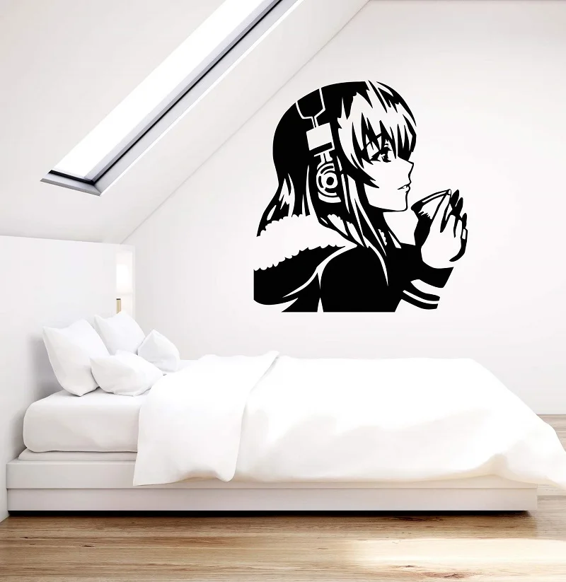 Виниловая настенная Аппликация Красивая аниме девушка с кофейной гарнитурой youth hostel художественная наклейка домашний декор Фреска 2YY7