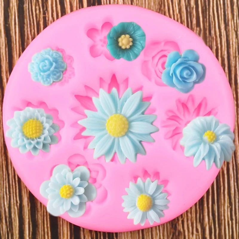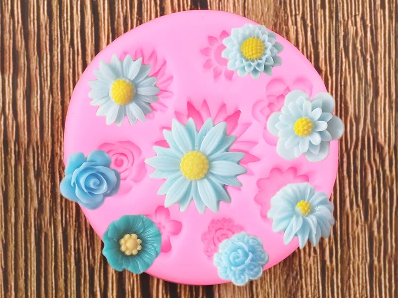 Ромашки Роза Мак Цветок силиконовая форма кекс Топпер Полимерная глина-смола форма для украшения торта инструменты шоколадные конфеты формы