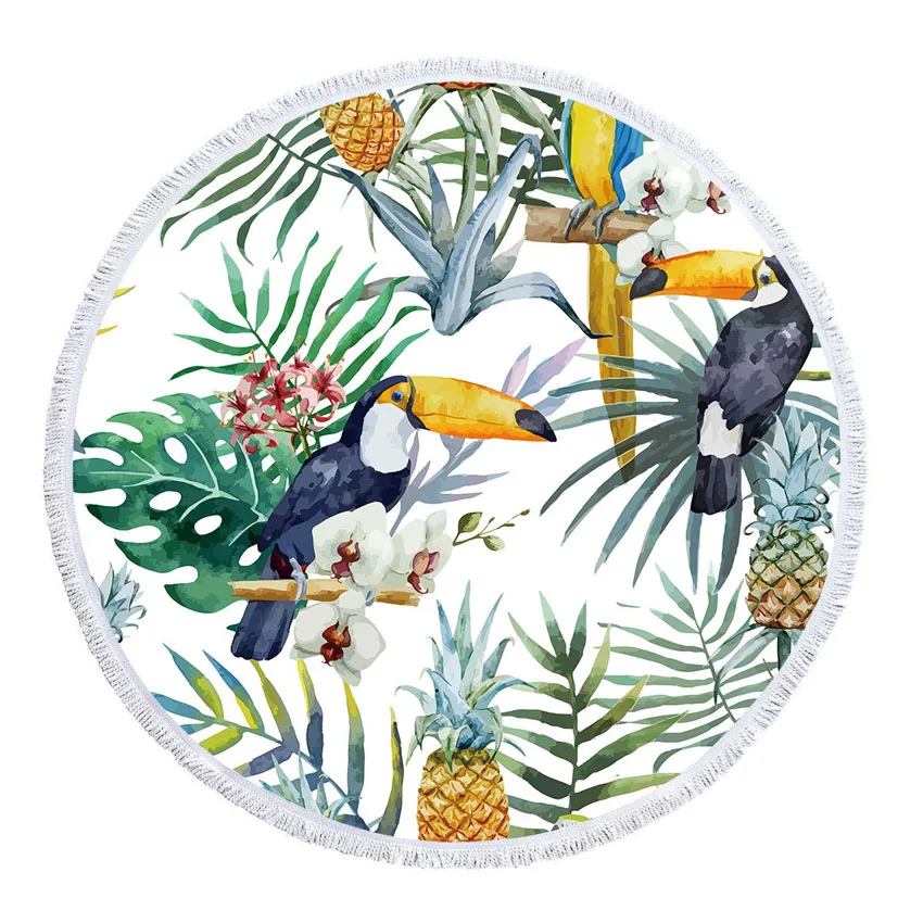 Летние круглые пляжные полотенца с изображением фламинго, цветов, пляжные полотенца для пляжа и ванны, спортивное одеяло для йоги с кулиской, рюкзак, сумка, накидка на бикини