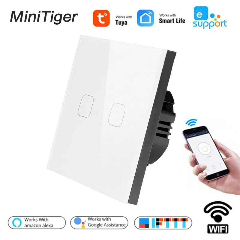 Стандарт ЕС Tuya/Smart Life/ewelink 1/2/3 Gang 1 Way WiFi Wall Светильник сенсорныйПереключатель для голосового управления Google Home Amazon Alexa