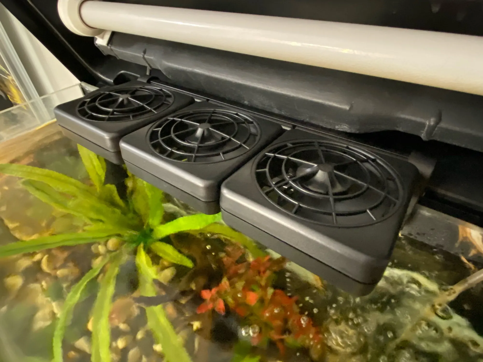 3 fan unit can lower tank water (140 litres) by 2 degrees. Little noisy but works great. Thanks