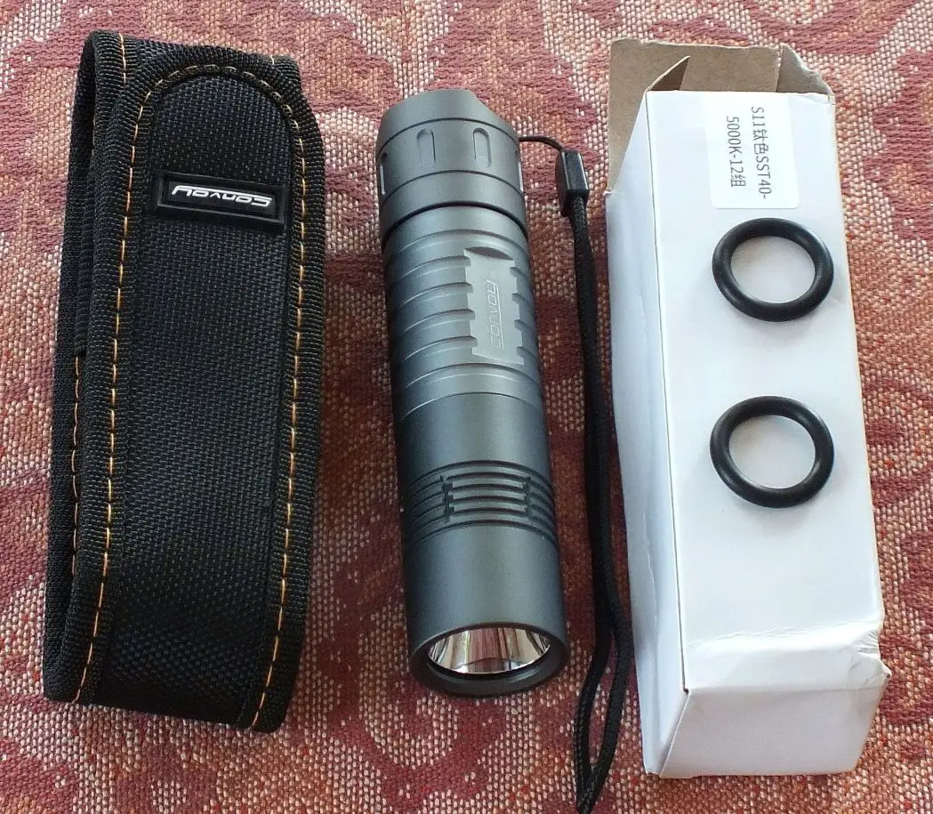 Рекомендую продавца - Саймон это уровень!!! Общался задавал вопросы ответы быстро получал. Заказывал свой первый Convoy S11 sst40 smo для катания на Велике еще не попробовал, но светит ярко с балкона далеко))) в подарок попросил расеиватель подарил преслал бесплатно! Плюс удобный темняк. К изделию нареканий (внеший вид) нет в голове отчетно видна надпись convoy. Пробывал на аккумуляторах 18650 резинки держат четко!