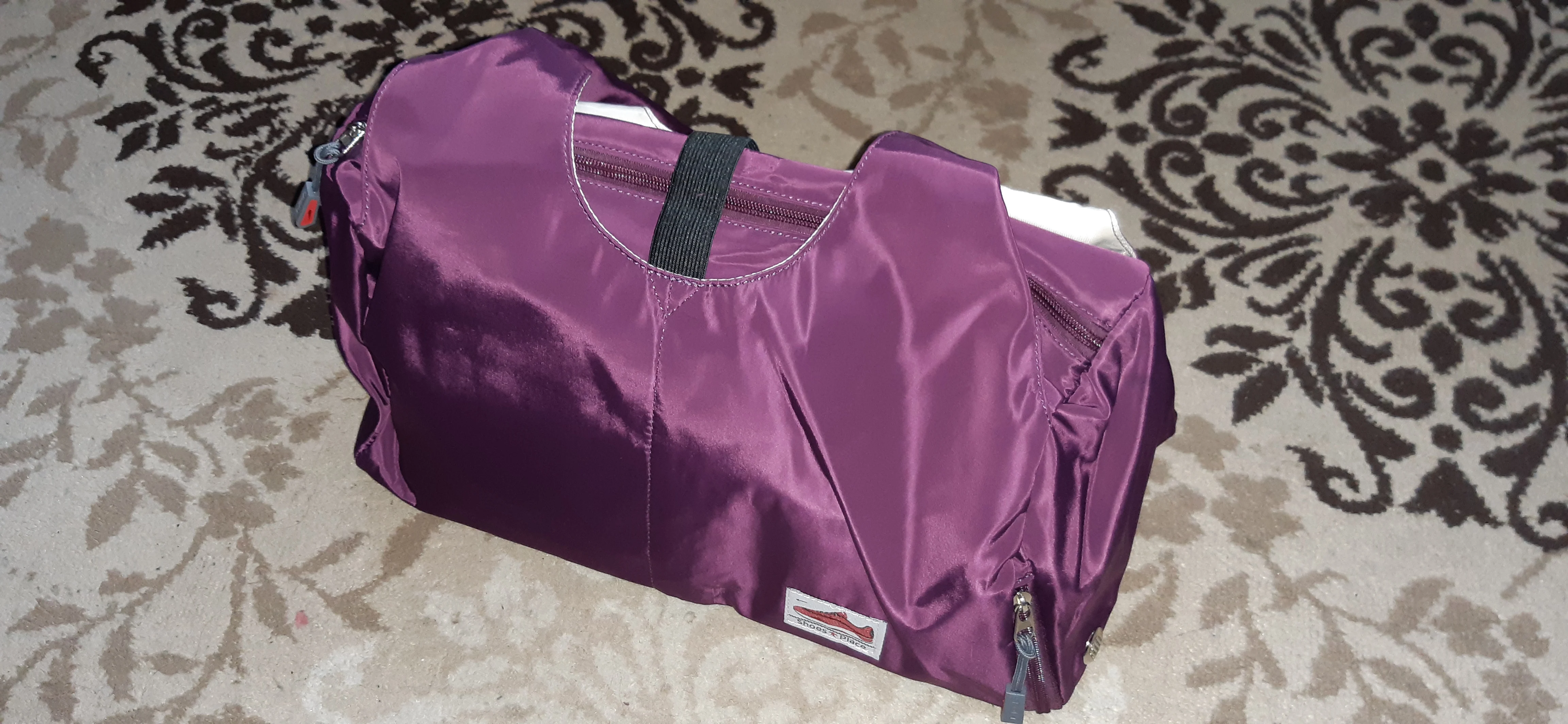 Классная сумка, с продавцом договорились, что пришлет версию L. Вместительная, довольно удобная. Ткань приятная, гладкая, прочная. Удобный отсек для обуви.