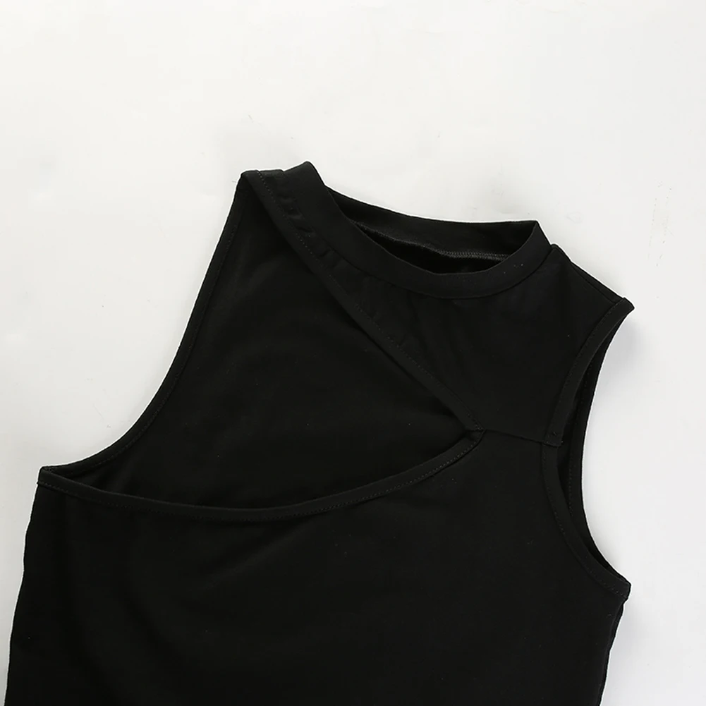 Женский топ без рукавов в стиле хип-панк, с бретельками на одно плечо, короткий топ, Повседневный тонкий черный топ, размеры S, M, L