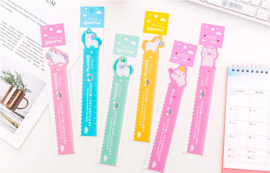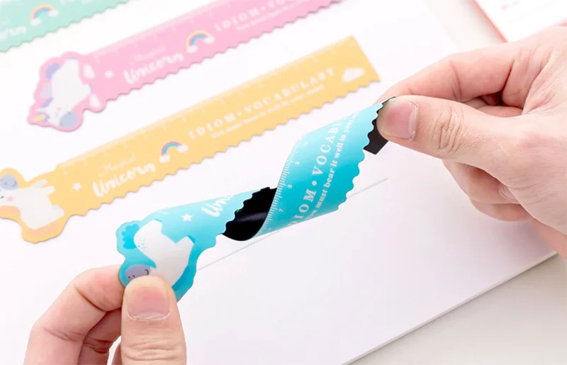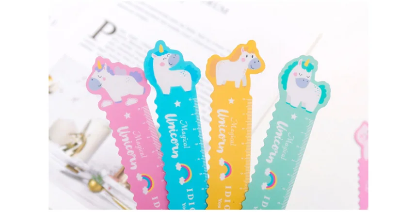 1 шт. Милая мультяшная Единорог мягкая прямая Линейка 15 см Гибкая Магнитная линейка студенческие мерные канцелярские принадлежности для рисования и школьных принадлежностей