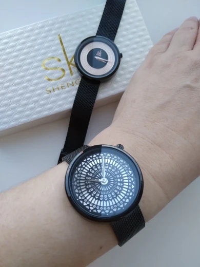 У меня даже слов нет какая это красота. Это уже вторые часы купленные в этом магазине. Первые брала в распродажу. И не дождавшись ещё их получения, в догонку заказала эти часы. Так как после распродажи прод дал купон и снизил на них цену. Ну цена просто сказка, доя этих часов. Всего 660 руб.!!!!! Это просто праздник какой-то!!!! Выбрала практически в таком же дизайне, что и предыдущие. Единственное отличие циферблат в серебре и рисунок другой. Мне очень понравились часики. Стильные и красивые. Спасибо!