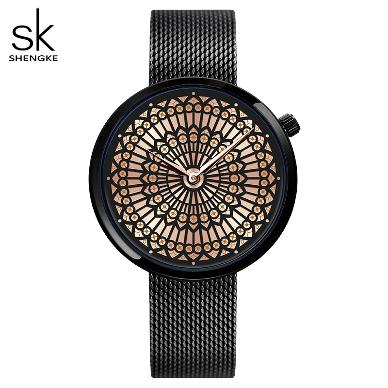 Часы наручные Shengke женские кварцевые, роскошные брендовые модные водонепроницаемые полностью стальные с сетчатым ремешком