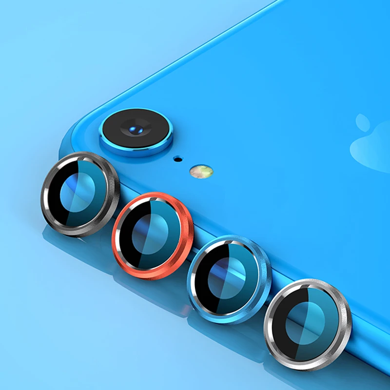 Закаленное стекло для объектива камеры 6D для iPhone XR, металлический защитный чехол с кольцом + прозрачное стекло для фронтального HD экрана, защитная пленка, черный, красный