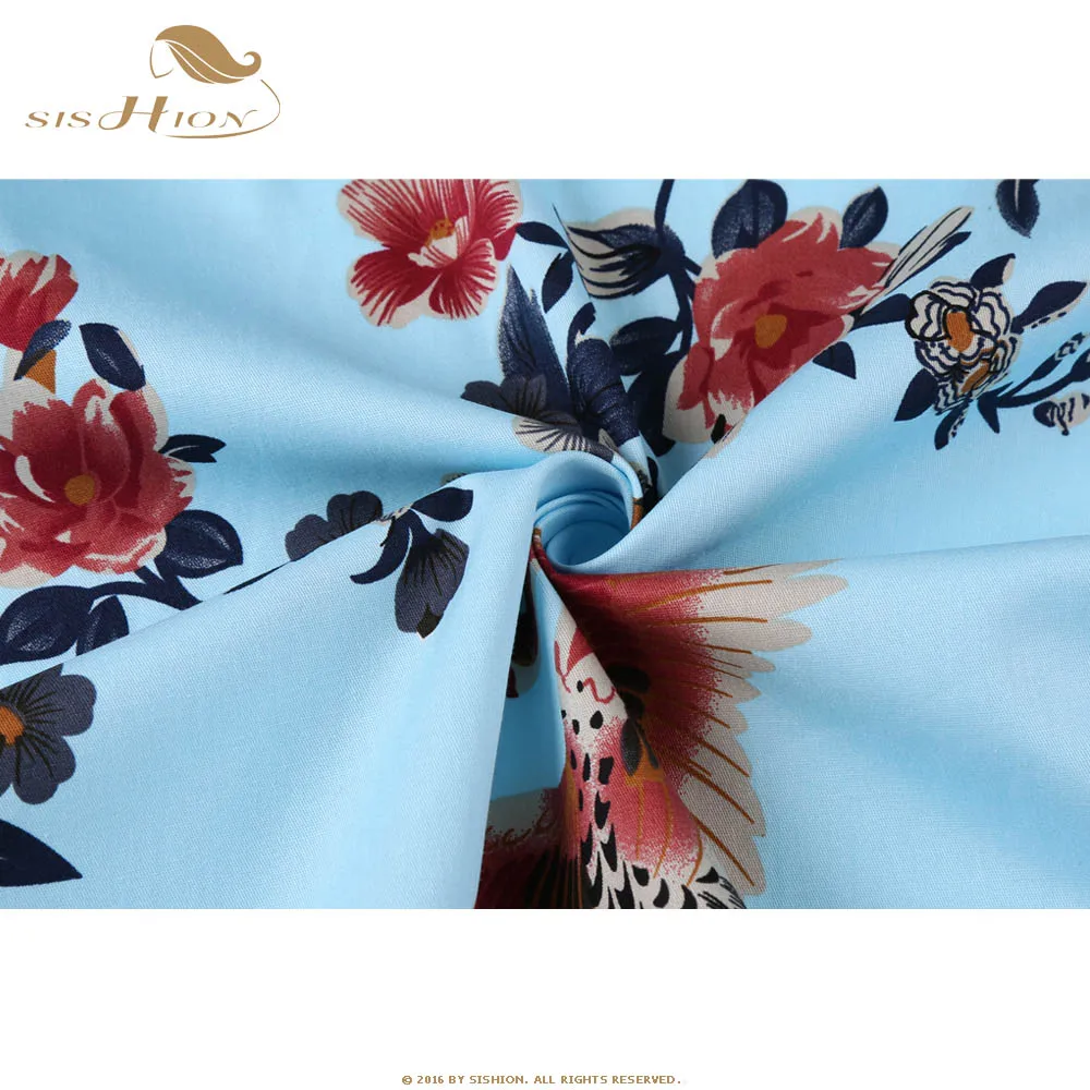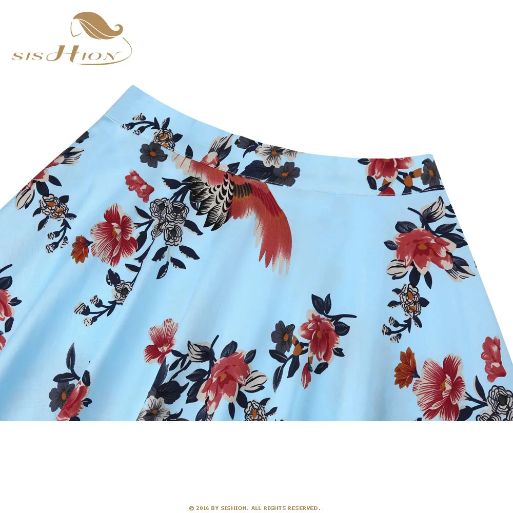 Женская летняя юбка SISHION 2022, Женская юбка VD0020 с цветочным принтом птиц, небесно-голубая, черная, винтажная юбка с высокой талией в стиле ретро
