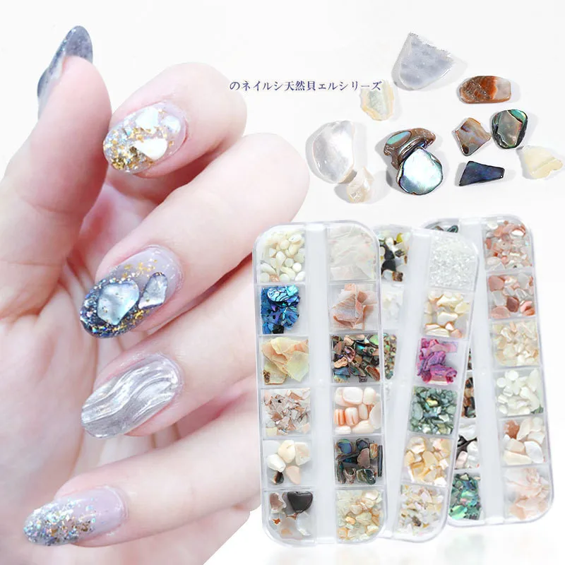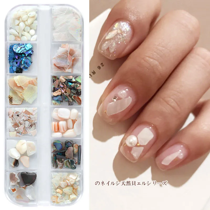 12 смешанных 3D морских ракушек, набор нестандартных камней для дизайна ногтей, УФ-гель, хлопья, слайдер, Шиммер для ногтей, жемчужные инструменты для маникюра