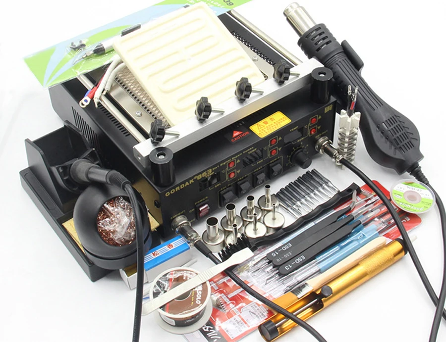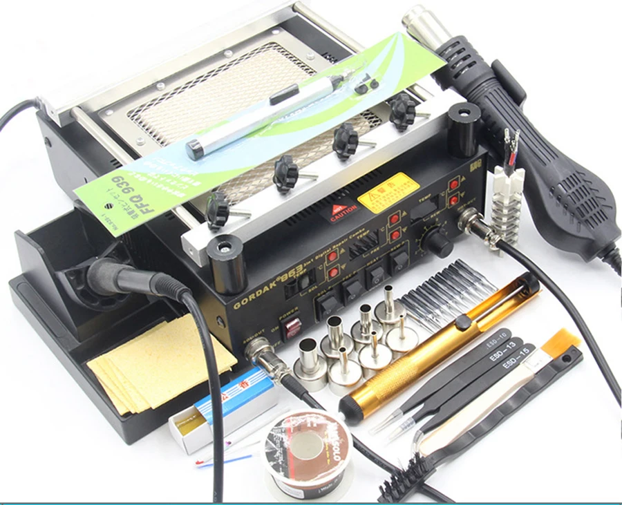 Ответственность покупателя1. Плата за удаленную область через DHL/FEDEX/UPS/TNT, не хочу платить или не отвечать нам, изменить другую пересылку2. Наша цена не включает в себя тариф, отправленный из Китая. Если покупатель отказывается оплатить налоговую пошлину и сотрудничать с таможенной очисткой, которая соглашается, что продавец не возмещает3. Плата за изменение адреса4. Неправильная личная информация не может быть доставленаGordak 863 3 в 1 паяльная станция цифровой тепловой пистолет горячего воздуха BGA паяльная станция электрическая сварочная железная Инфракрасная паяльная станцияПараметры пистолета горячего воздуха:Номинальное напряжение: 220 В переменного тока 50 ГцМаксимальная потребляемая мощность: 450 ВтТип: Бесщеточный вентилятор, мягкий ветерПоток воздуха: 120 л/мин (макс.)Диапазон температур: 100 градусов Цельсия-500 градусов ЦельсияДлина ручки в сборе: 120 смШум: 45 дБ Параметры паяльной станции:Выходное напряжение: 24 В переменного токаМаксимальная потребляемая мощность: 50 ВтДиапазон температур: 100 градусов Цельсия-500 градусов ЦельсияЗаземляющий потенциал: на 2 мВ меньшеСопротивление заземления: на 2 Ом меньшеНагревательный элемент: керамический нагревательный элементМощность нагревателя: 50 Вт Параметры подогревателя:Максимальная мощность: 605 ВтТип лихорадки: Инфракрасная нагревательная пластинаДиапазон температур: 100 градусов Цельсия-500 градусов ЦельсияРазмеры: 221 × 251 × 112 ммВнимание перед продажейОтветственность покупателя1. Плата за удаленную область через DHL/FEDEX/TNT, не хочу платить или не отвечать нам, изменить другую пересылку2. Наша цена не включает в себя тариф, отправленный из Китая. Если покупатель отказывается оплатить налоговую пошлину и сотрудничать с таможенной очисткой, которая соглашается, что продавец не возмещает3. Плата за изменение адреса4. Неправильная личная информация не может быть доставлена