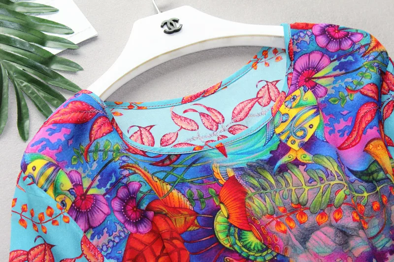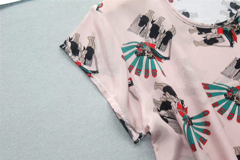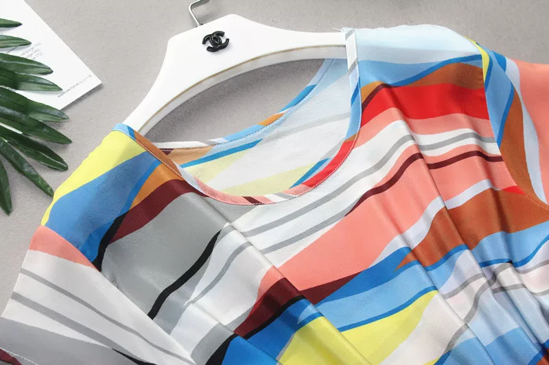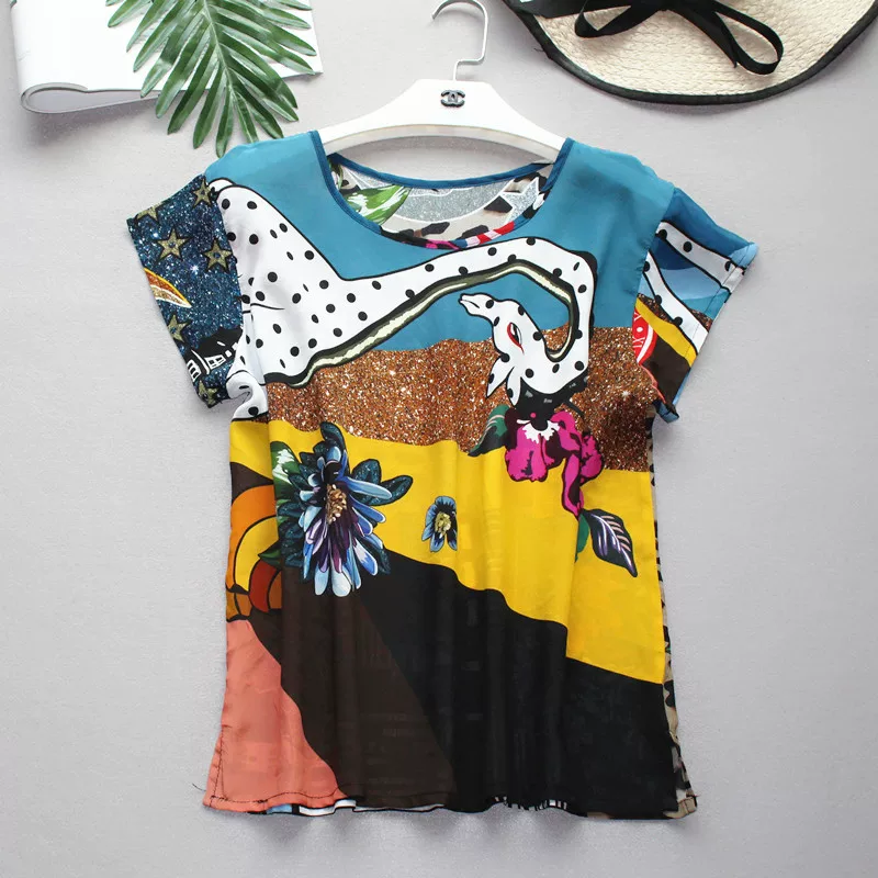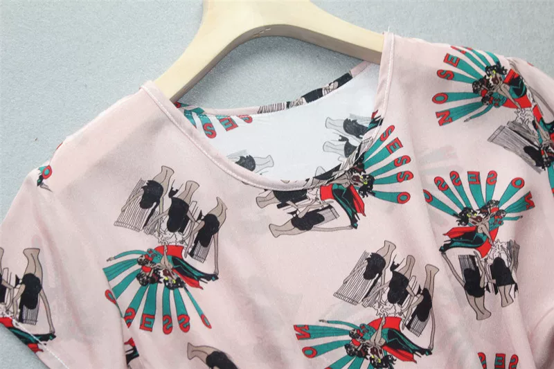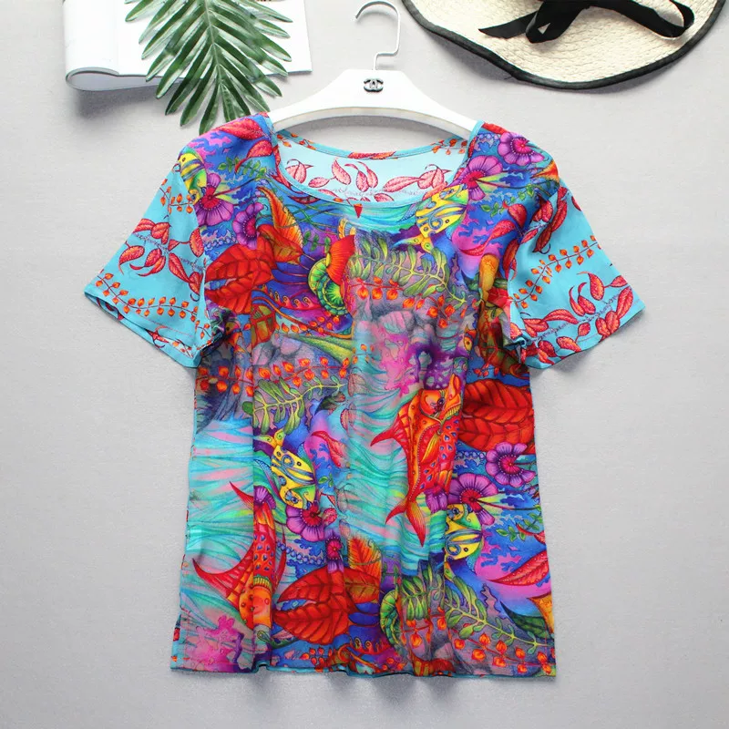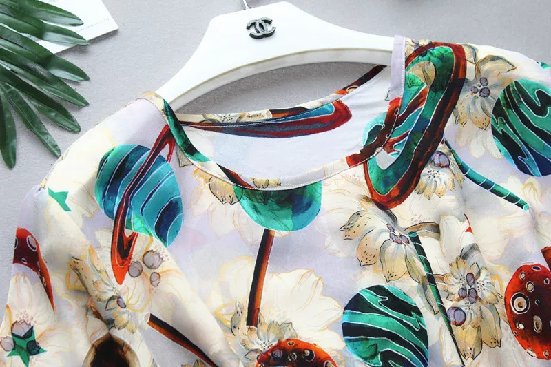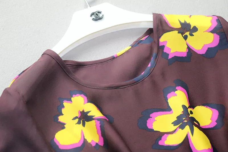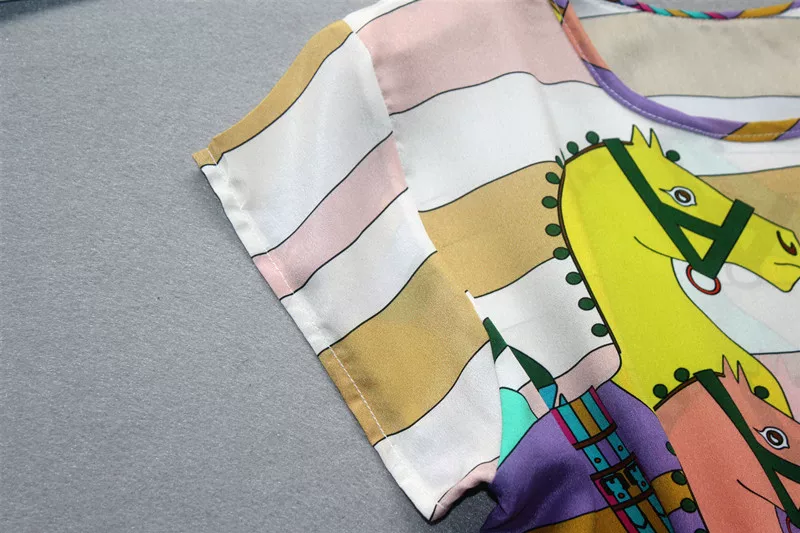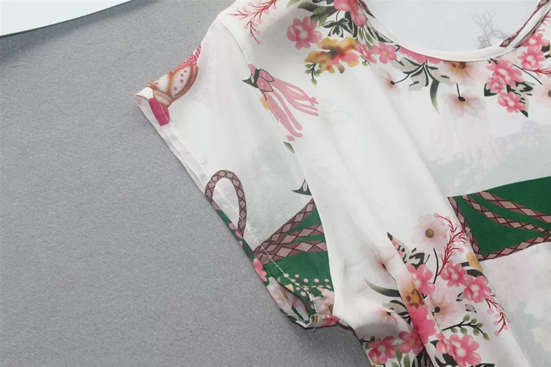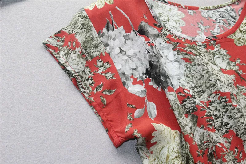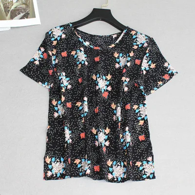 2021 Лето Новое поступление женский 100% шелк с коротким футболки с рукавами Круглый воротник шелковой футболкой со свободным низом-рубашка
