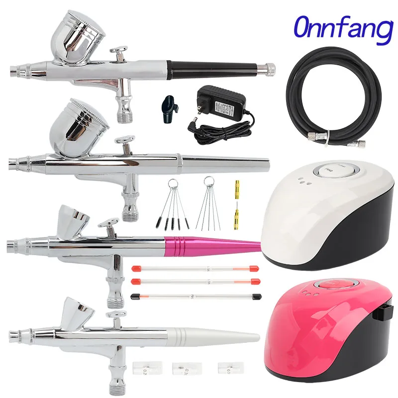 Комплект аэрографа двойного действия компрессор с воздушным охлаждением щетка 0,4 мм сопло Краски пистолет-распылитель для нейл-арта, Make Up Air-набор кистей