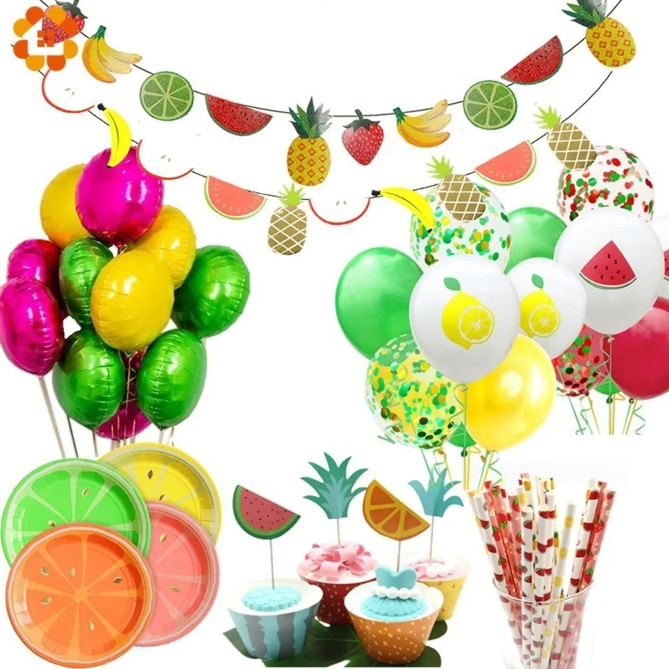 1 комплект, милые фрукты, тема арбуз, торт, Topper Ledбаннервоздушные шары, летние бассейн, вечерние, свадебные предметы для украшения дня рождения