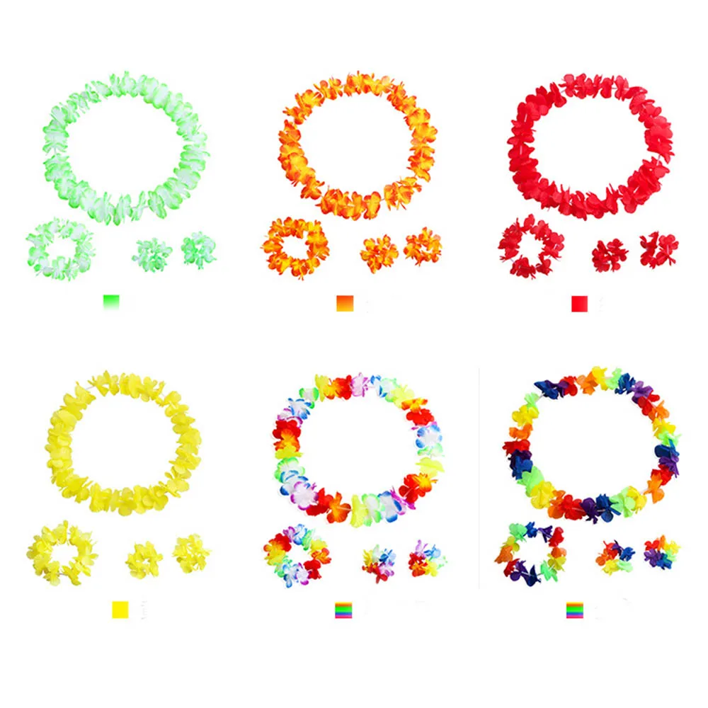 4 шт.компл. Гавайские цветы, ожерелье, повязка на голову, гирлянда, свадебные украшения, пляжные тропические Гавайские цветы, Luau Leis, товары для вечерние