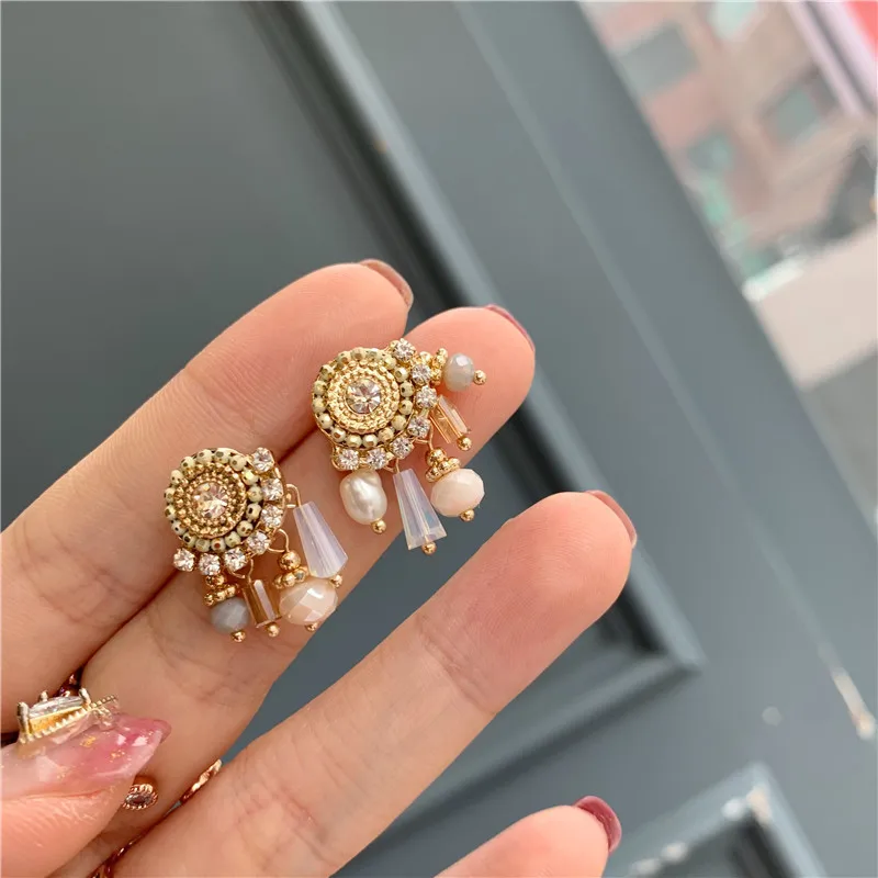 Симпатичные Блестящие Висячие серьги Стразы для женщин корейские кв...