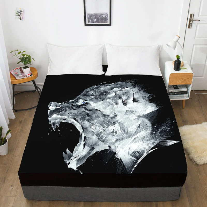 Простыня с 3D принтом на заказ, эластичная простыня QueenKing, чехол для матраса с абстрактным животным волком 160x20 0150x200, Прямая поставка