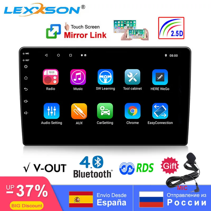 Магнитола универсальная RDS 2DIN на платформе Android 8,1, 10 и 9 дюймов, 1 Гб + 16 ГБ, автомагнитола с экраном 1024x600, GPS, MirrorLink, Bluetooth, Wi-Fi, FM, SWC, DAB