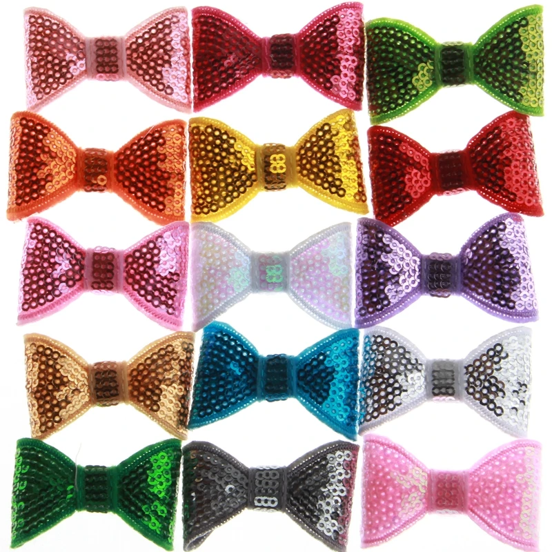 120 шт., 5 см, модные блестящие банты с блестками для девочек, аксессуары для волос, аппликация, бант для волос для повязок на голову, тканевые заколки для волос