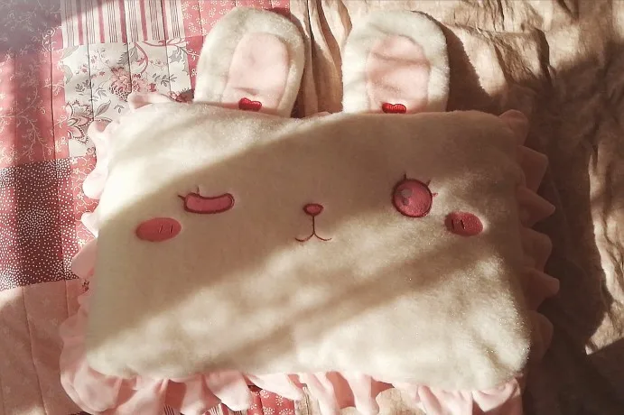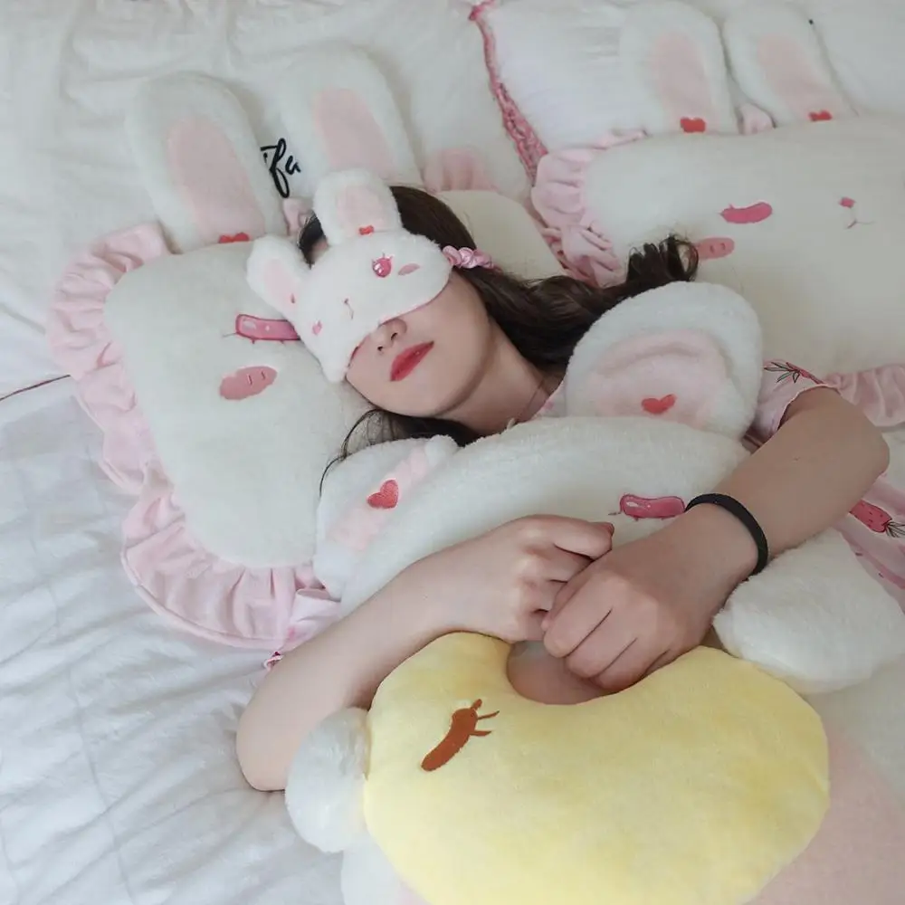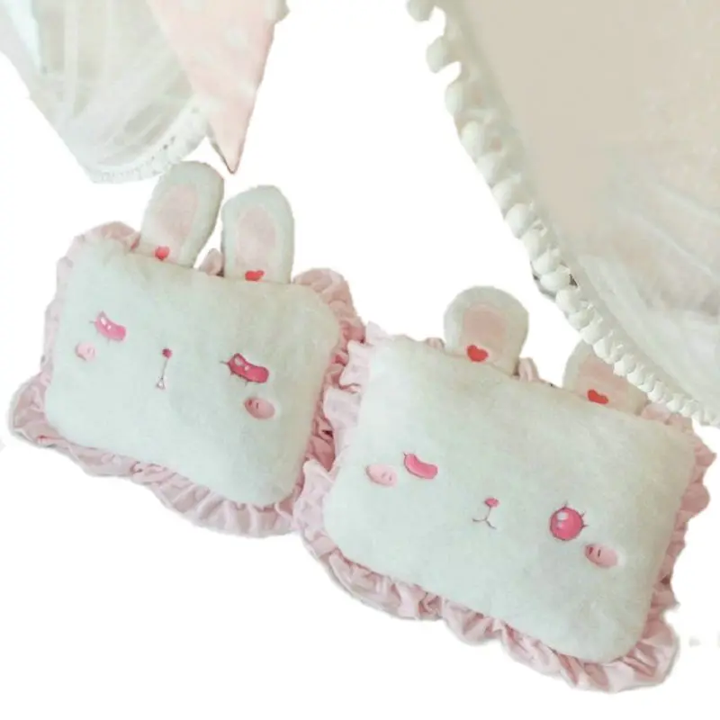Квадратная подушка в виде розового кролика с милыми кроличьими ушками, кружевная подушка в стиле Лолиты, украшение для спальни для принцессы, подарок на день рождения