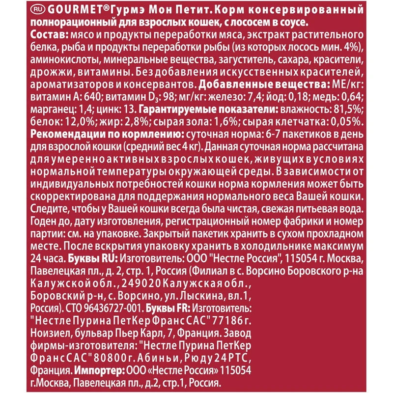Влажный корм Gourmet Перл Соус Де-люкс для кошек с телятиной в роск...