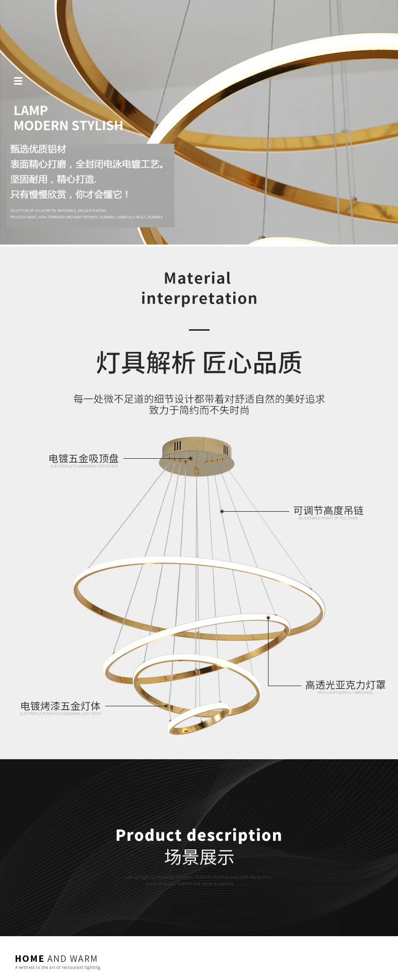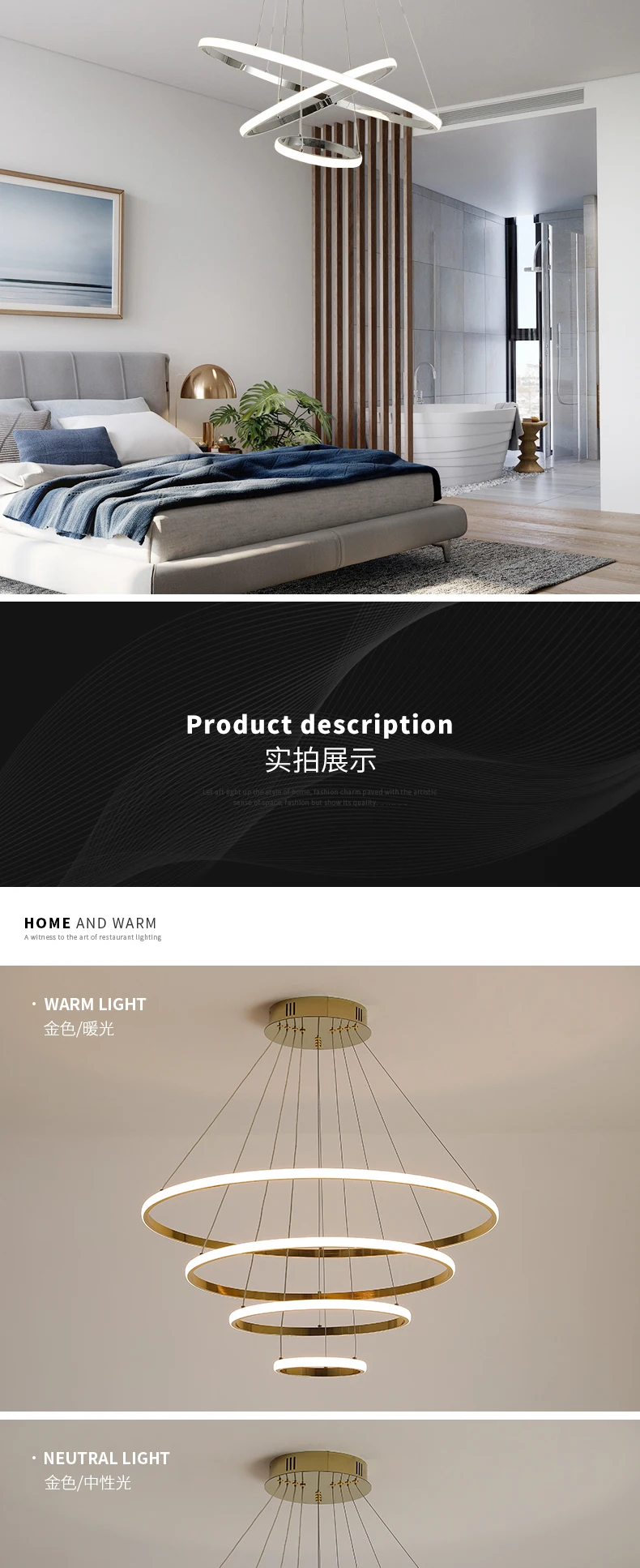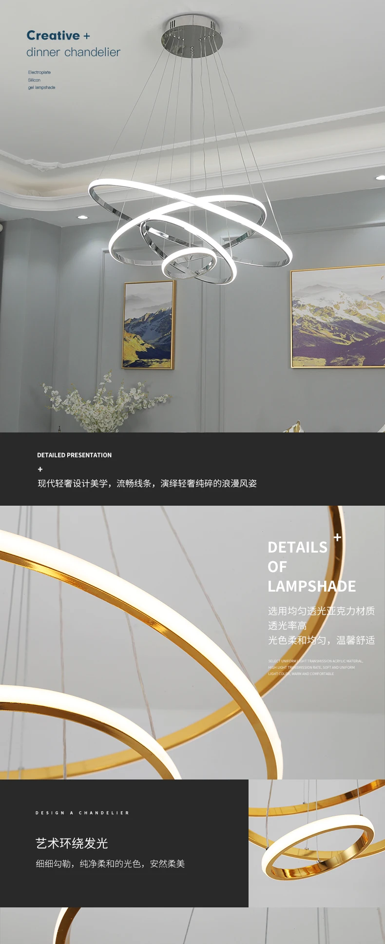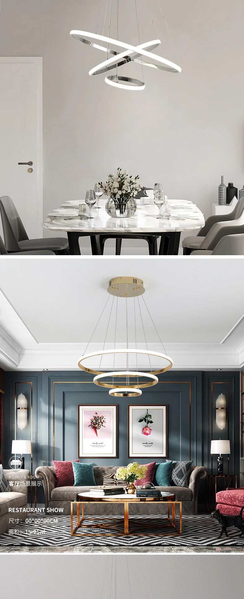 Современный светодиодный светильник для гостиной, спальни, столовой, хромированное кольцо, креативная Люстра для дома, новинка 2019