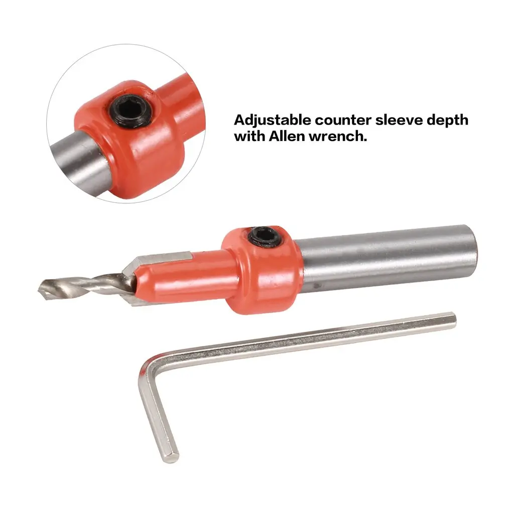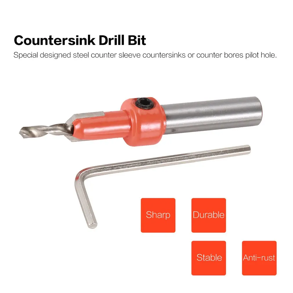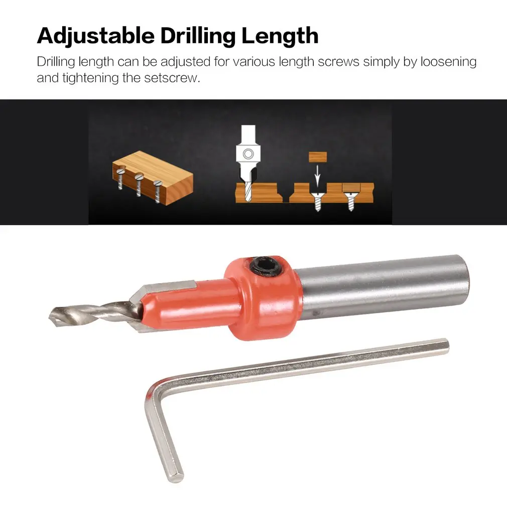 Особенности:1. Специальная конструкция стальных столешниц или столешниц пилотного отверстия.2. Регулируемая глубина рукава с шестигранным гаечным ключом3. Стандартный шестигранный хвостовик, быстро меняется и совместим.4. Сверло и столешница для деревянных винтов без изменения бит.5. Длина сверления может быть отрегулирована для различных винтов длины просто путем ослабления и затягивания установочного винта.
