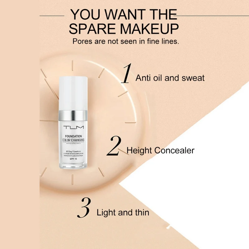 3. Этот жидкий основа имеет сильный консилер эффект, который может полностью покрыть прыщи, тонкие линии, веснушки, поры и т. Д.