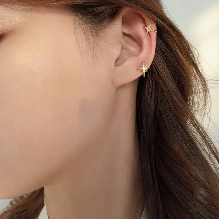 Золотые серьги-клипсы в виде гексаграммы, корейские серьги на Козел...