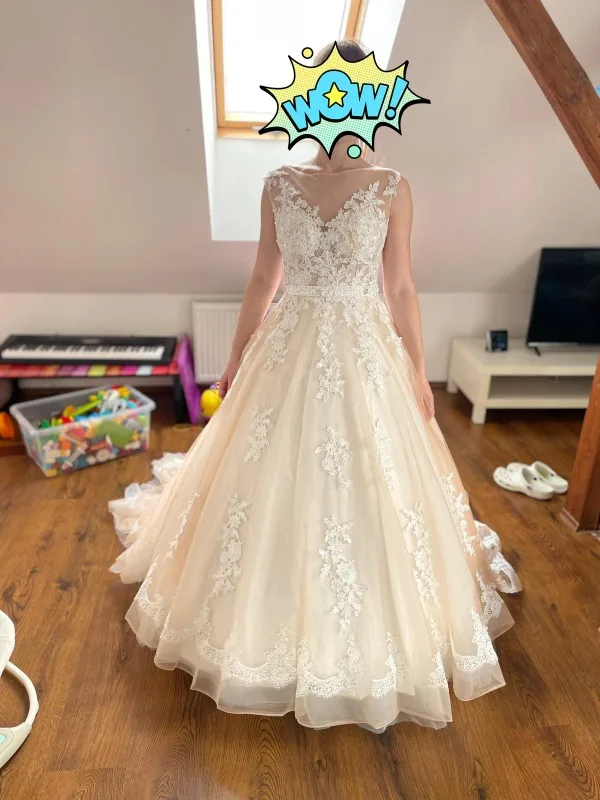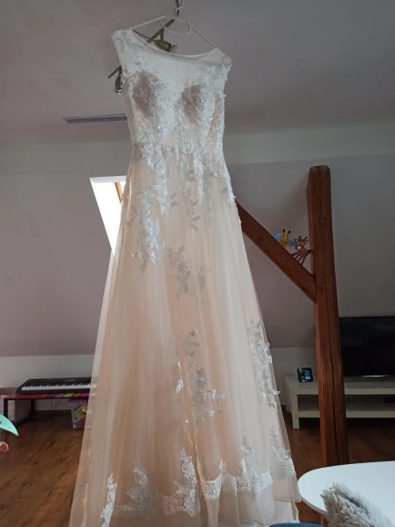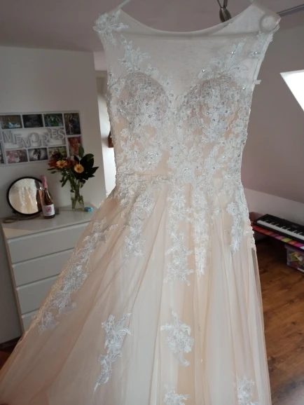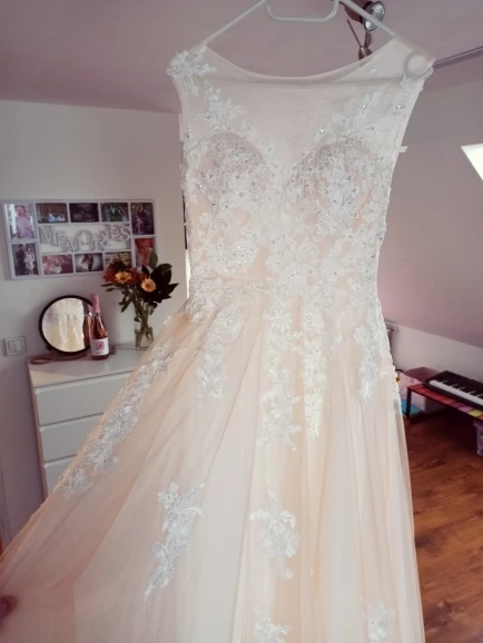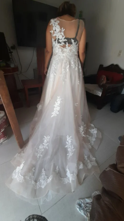 Платье красиво изготовлено и отличного качества! Я потребовал, чтобы Тюль был более телесного/телесного цвета вместо белого, и продавец был очень любезен. Спасибо!