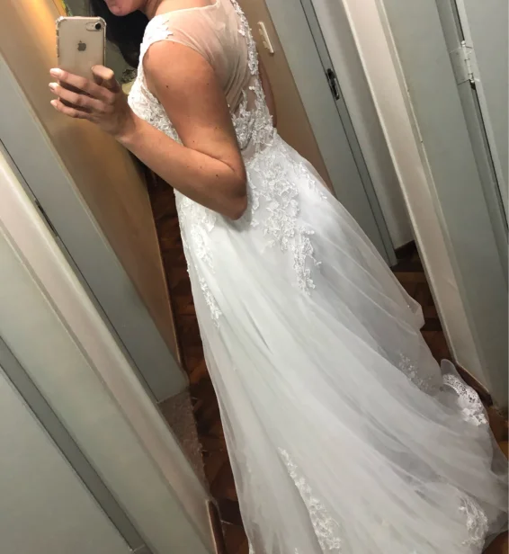 Это самое великолепное платье, которое я когда-либо видели где угодно! Мне подходит как перчатка, это очень идеально. Я на Луне с ним, и я не могу вам достаточно благодарить. Вы сделали день моей свадьбы намного более особенным. Очень профессиональная швея