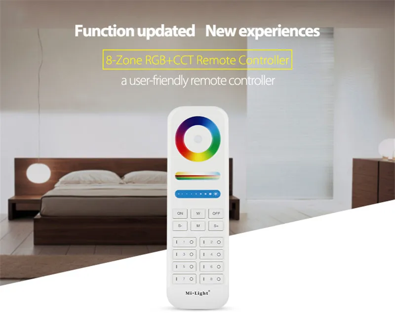 Название продукта: 8-зона RGB + CCT пульт дистанционного управления Номер модели: FUT089 Рабочая температура: -20 -60 ℃ Напряжение: 3 в (2 * AAA батареи не включены) Частота передачи: 2400-2483,5 МГц Метод модуляции: GFSK Передающая Мощность: 6dBm Расстояние управления: 30 м В режиме ожидания Мощность: 15uA Размер: 153*47*19 мм