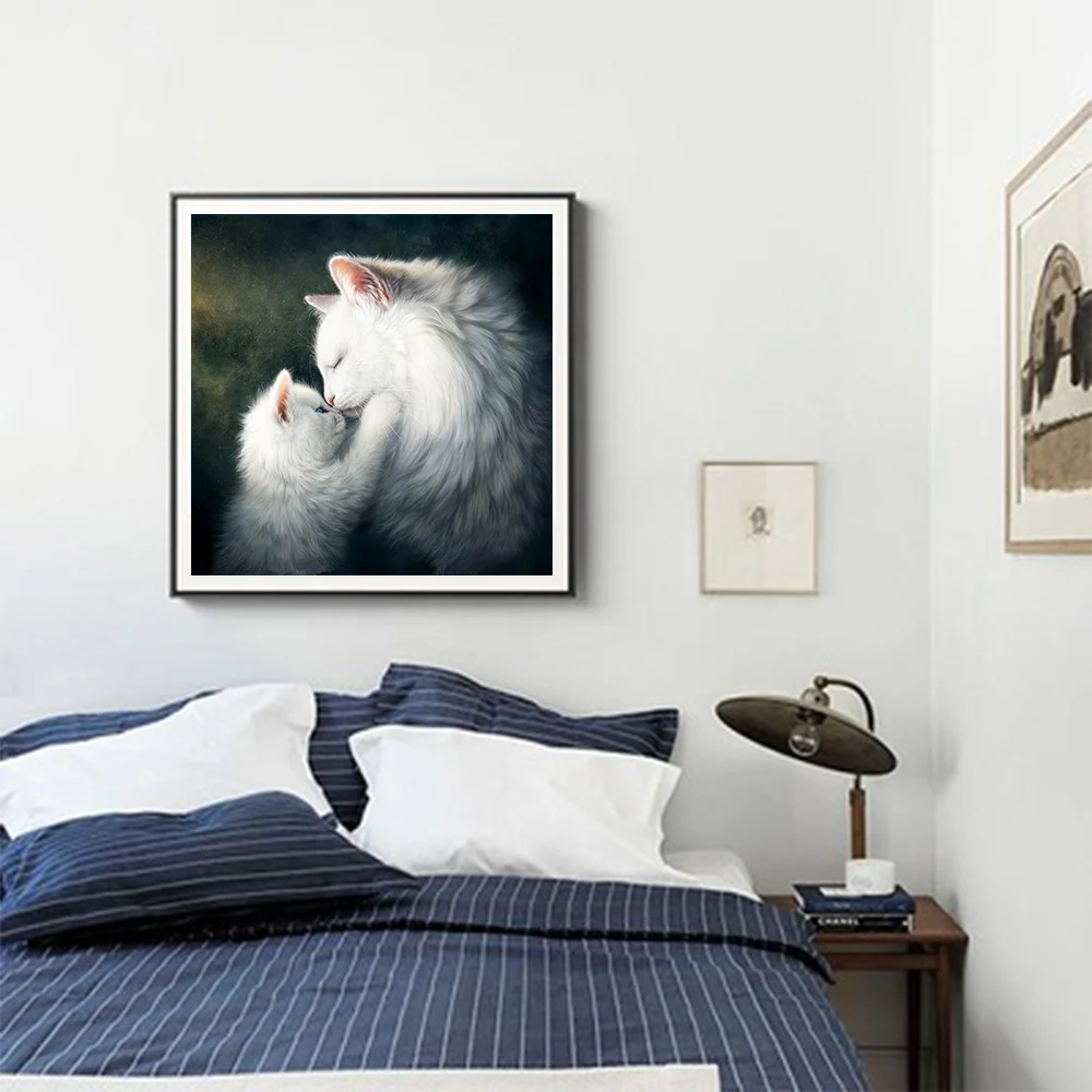 Белая кошка, для мамы и ребенка, алмазная картина, Полный Круглый котенок, мультфильм, новинка, сделай сам, наклеивающаяся дрель, вышивка крестом 5D