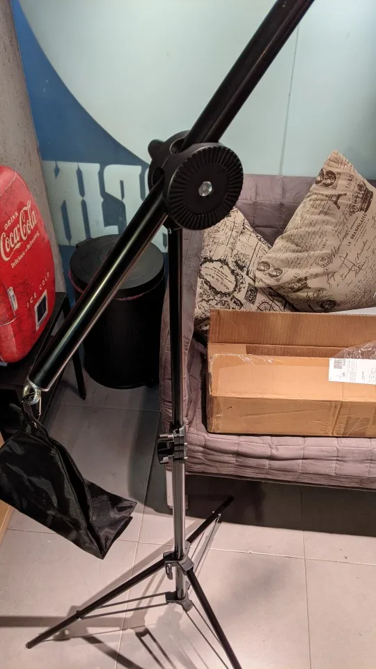 Пришло быстро. Что очень ценится. Что касается качества, он очень хрупкий. Нет проблем, я поддерживаю микрофон, но я попробовал поставить камеру SLR 1,5 кг (что-то действительно маленькое), и она немного сгибается, поэтому я не понимаю, как я могу обрабатывать софтбокс.