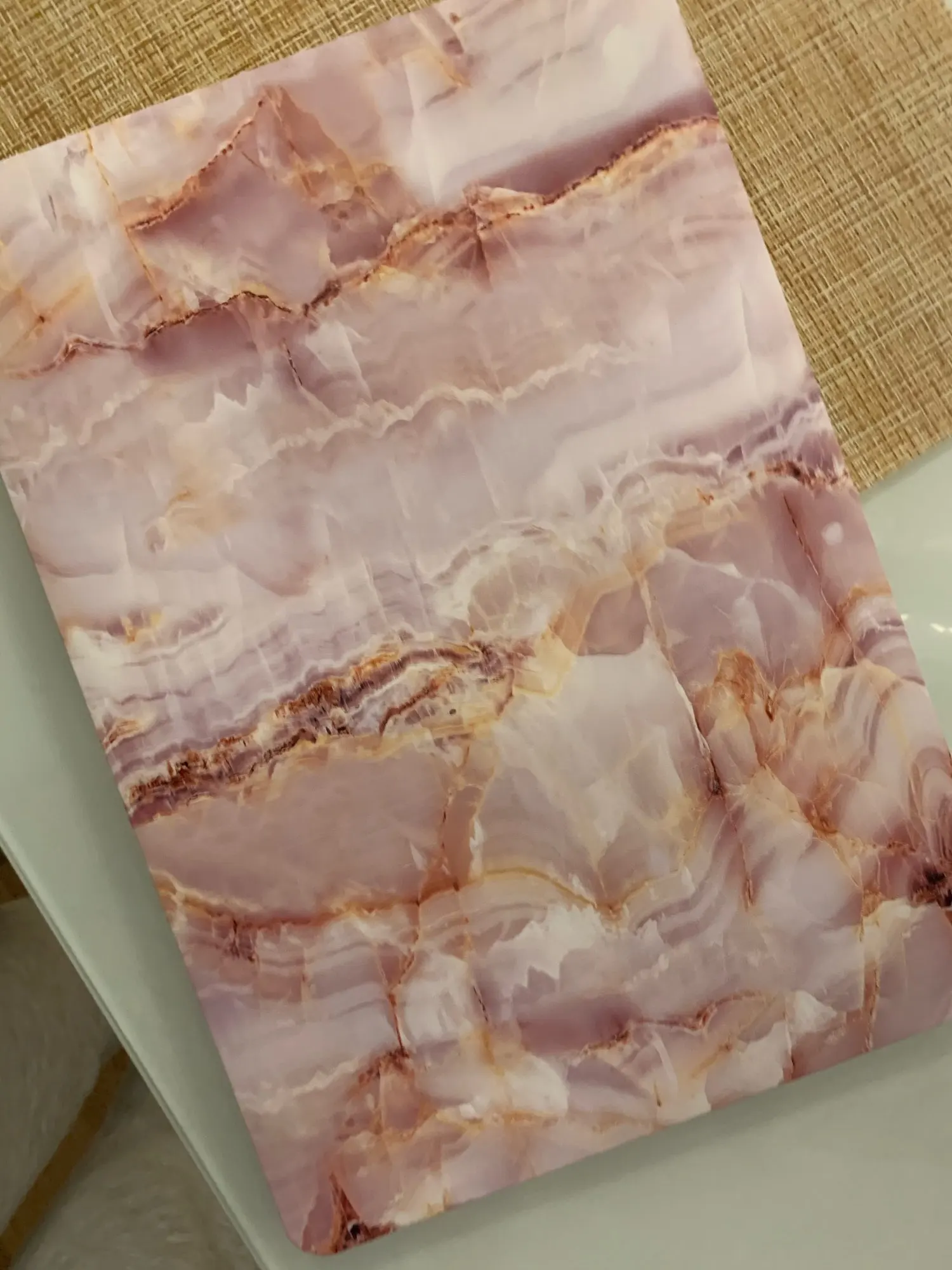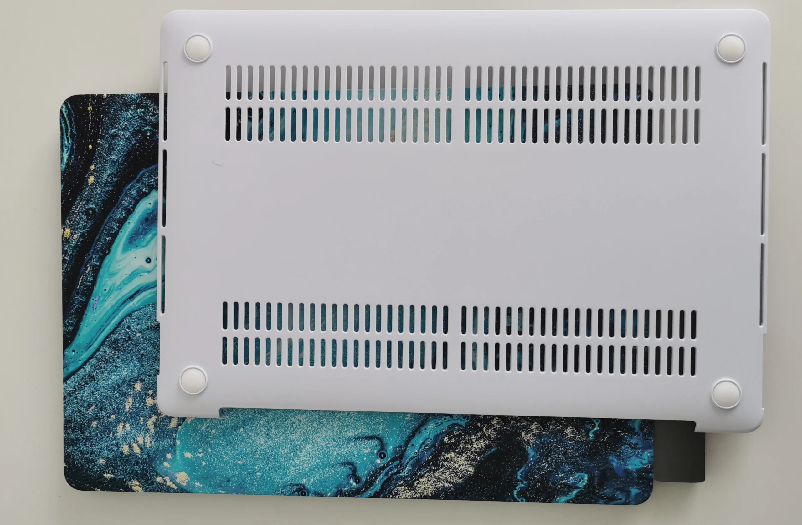 пластик софтовый, мне очень неприятен. почему-то темные принты сделаны на белой основе пластика, что тоже странно. я выбирал потемнее, а в итоге, у меня с одной стороны ноут темный, а с другой тупо белый. главное, не влезает переходник на тайпси, следовательно не могу использовать нижнюю крышку. в общем, буду заказывать другой