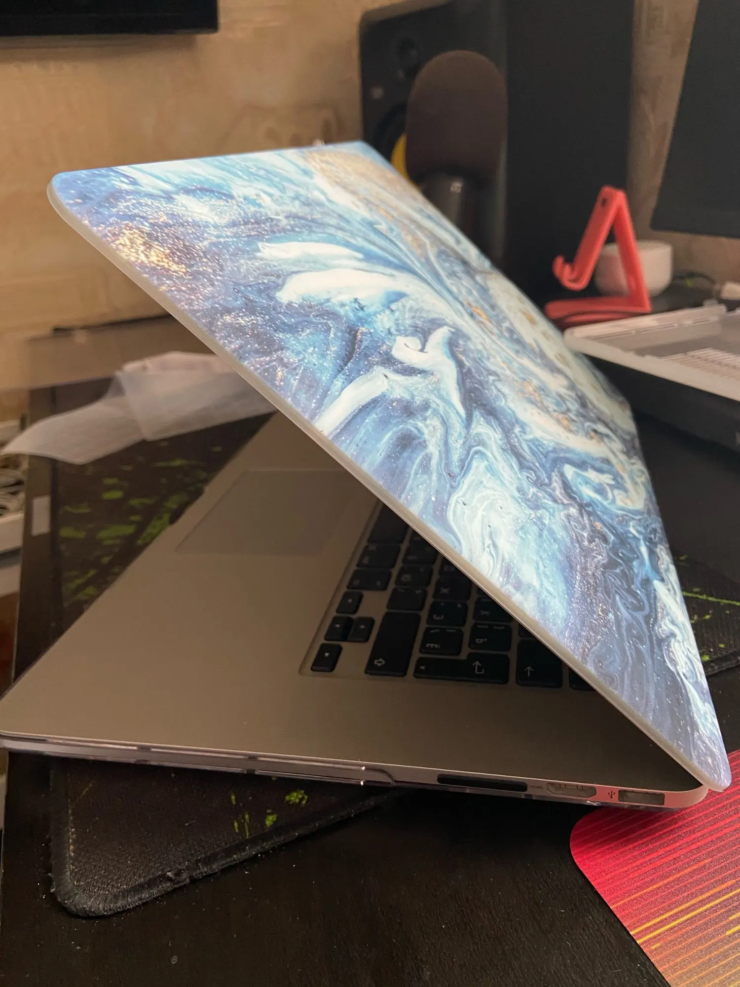 Не знаю как вам нравится такие чехлы, но продавец положил в комплект крышку совсем для другого мака и из-за этого дисплей не закрывается полностью так как выемки не подходят, края не крашенные, эффект блёсток золотых размытые, принт тусклый, ему не хватает лака, снять верхнюю крышку совершенно невозможно, если хотите повредить свой мак покупайте эту защиту, удачи! Деньги вернул за товар из-за другой крышки и в маке из-за этого открыта крышка на 0,5 см