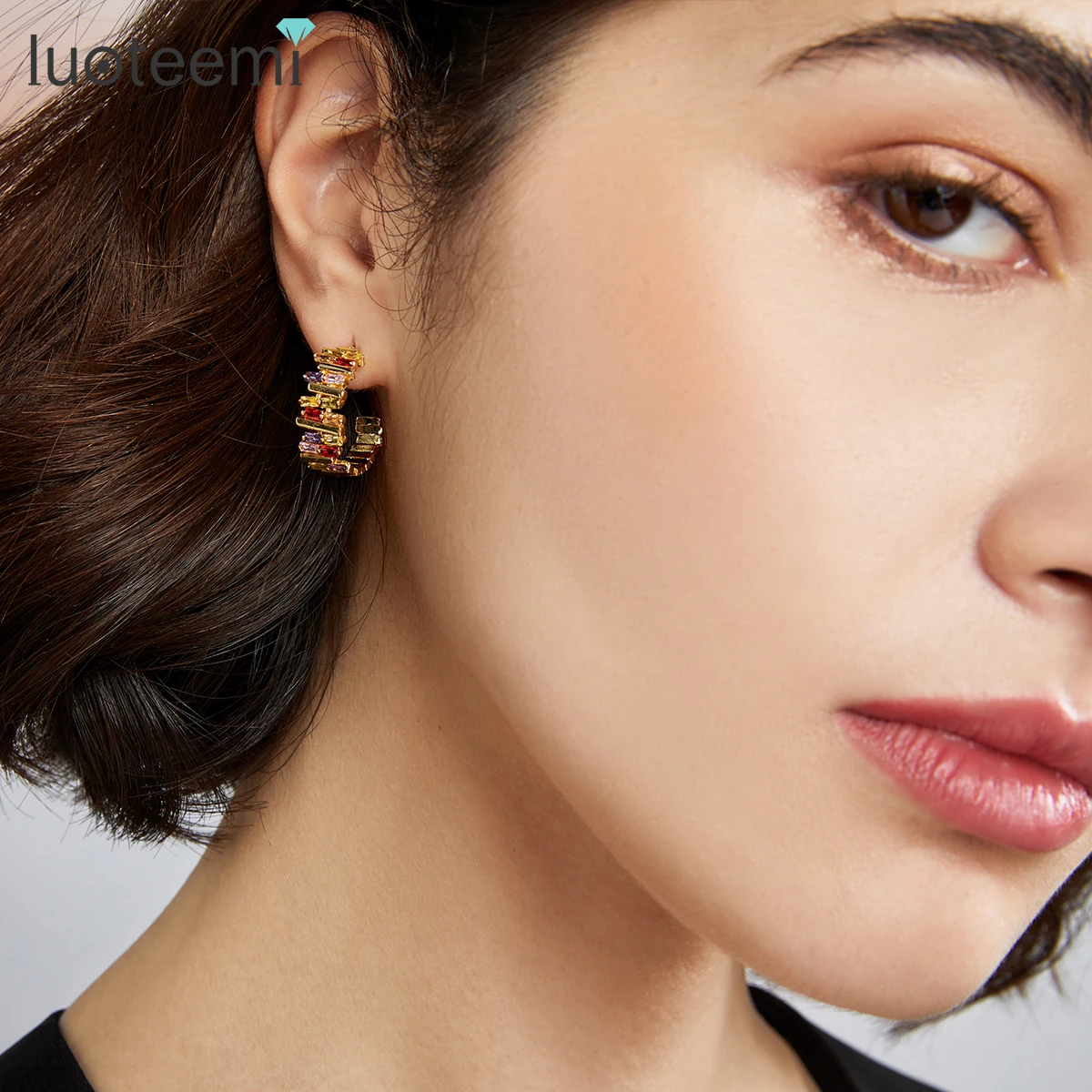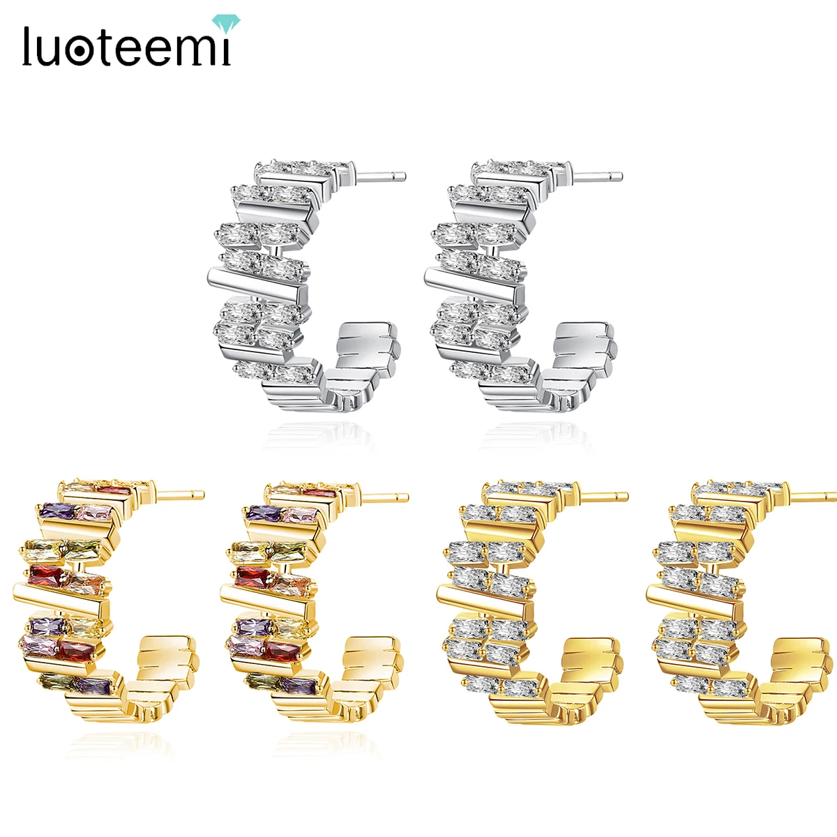 Изысканные полукольцевые серьги-кольца LUOTEEMI для женщин, роскошные женские серьги с фианитами для вечерние, рождественский подарок для девушек