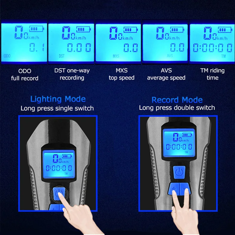 Особенности: Функция: светильник с измерителем скорости/звуковой сигнал/состояние батареи 4 светильник режимов: высокая яркость, низкий яркий, вспышка, желтая светильник 6 роговых колец: свисток, сигнализация, труба, Диди, Джиджи, джиу Литиевая батарея внутри, 2-3 часа зарядки, можно использовать 3-5 часов. Спецификация: Размер: 10,5х4, 1 см Вес: прибл. 170 г Материал: АБС-пластик Посылка включает: 1 x велосипедный светильник (как показано на опции)