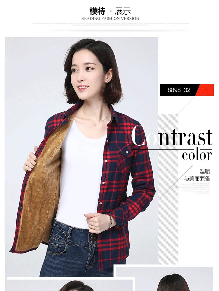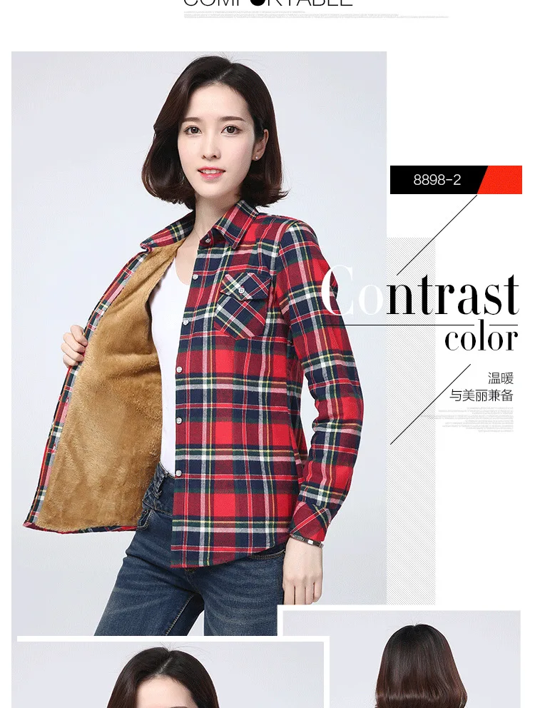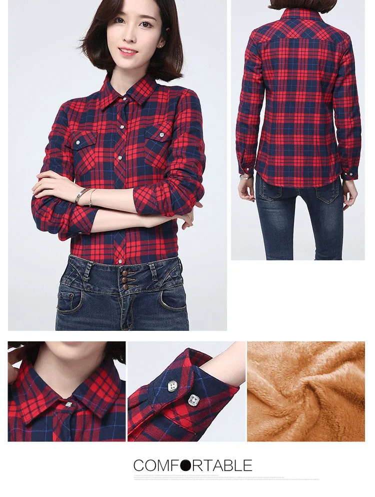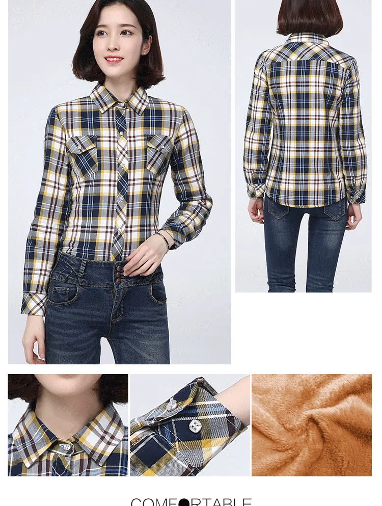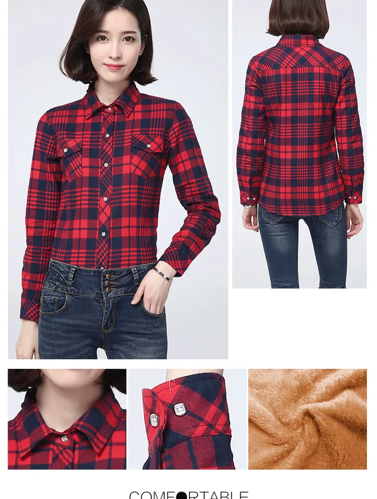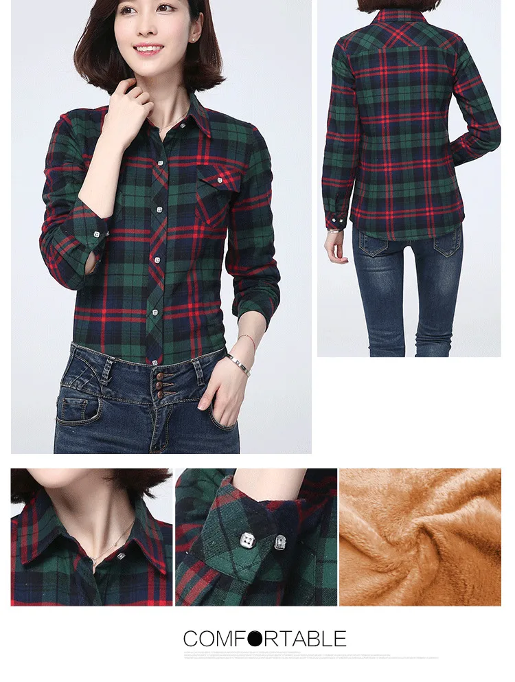 Женская хлопковая блузка с длинным рукавом, теплая фланелевая рубашка в клетку, Осень-зима 2021