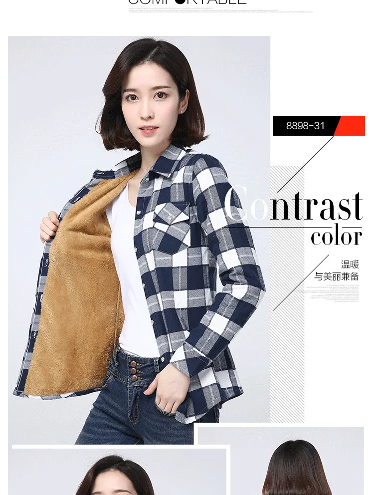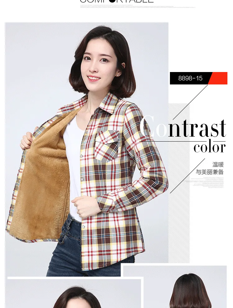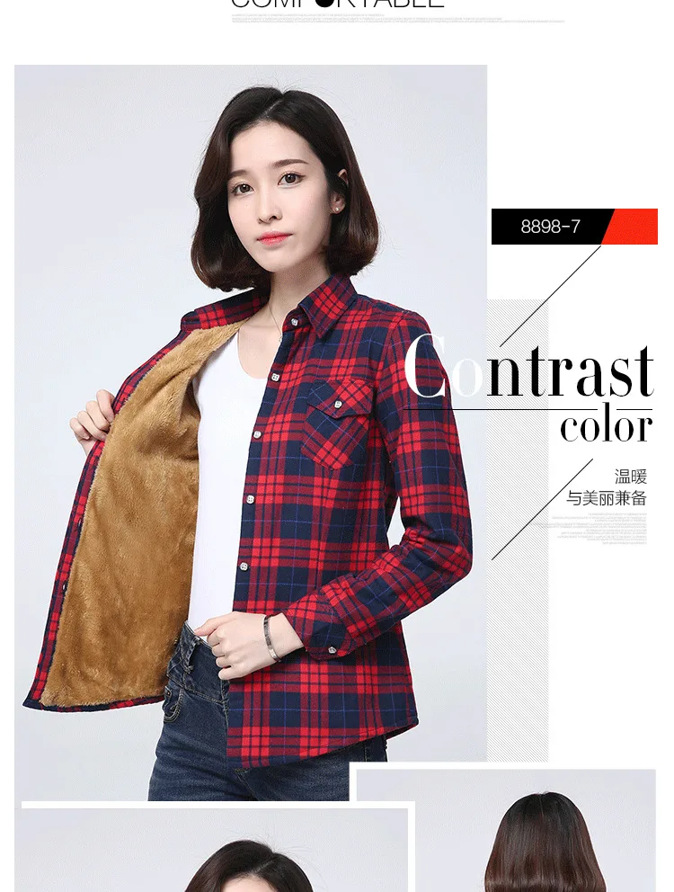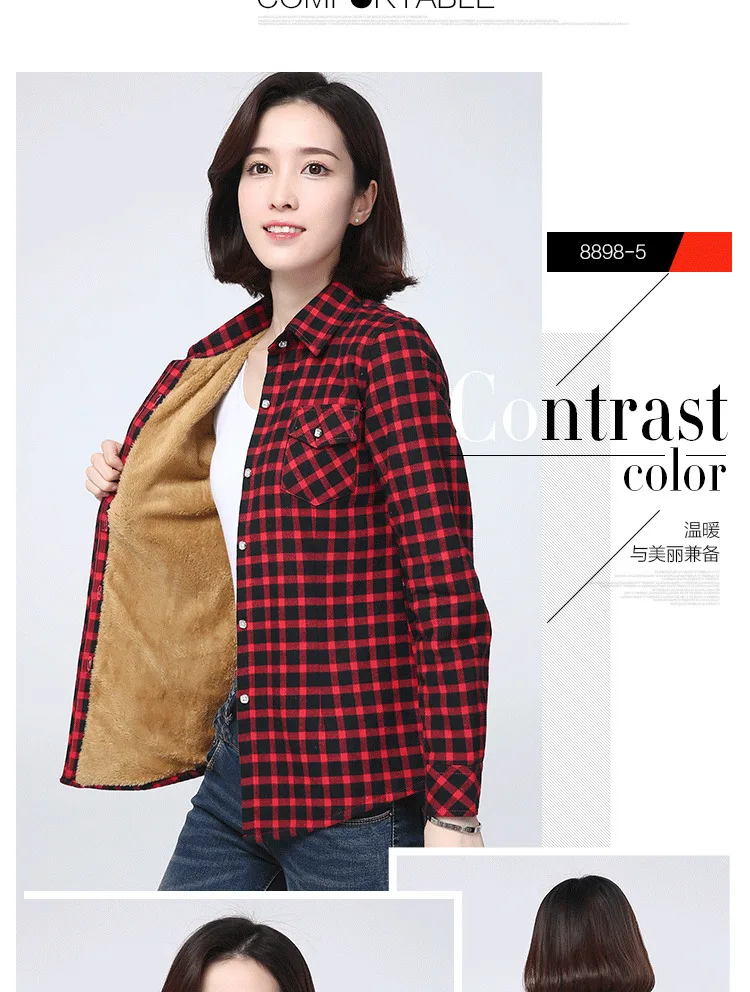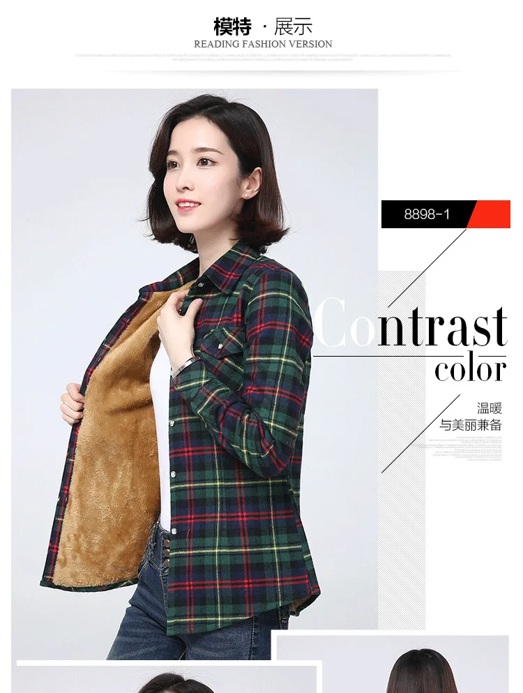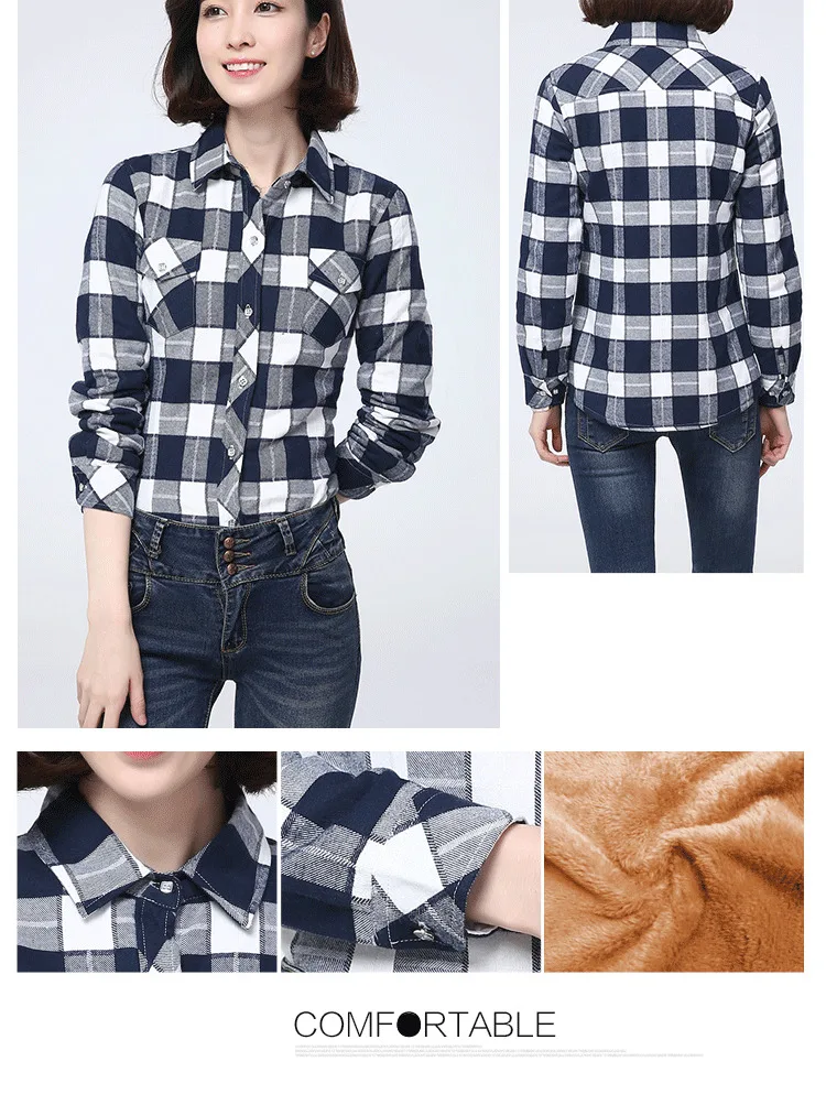 Женская хлопковая блузка с длинным рукавом, теплая фланелевая рубашка в клетку, Осень-зима 2021