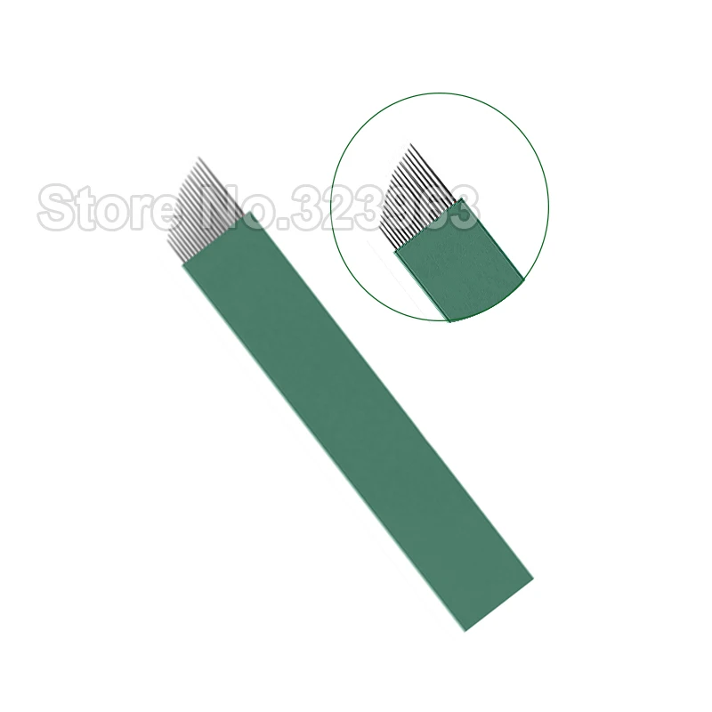 0,16 мм пластинки микроблейдинг Tebori иглы 9, 12, 14, 15, 18 21 15U 16U 12 U татуажные иглы для перманентного макияжа лезвие ручная ручка 1. Наименование товара: Lamina Tebori 2. Микроблейдинг Игла материал: нержавеющая сталь 316 3.Laminas Tebori Цвет: зеленый 4. Диаметр Microblading Laminas: 0,16 мм 5. Характеристики: тонкий/тонкий 6. Используется с: ручной ручкой для татуировки 7. Использование для: бровей 8. Используется для: перманентного макияжа 9. Доставка: Быстрая доставка/Быстрая доставка 10: посылка: 200 шт. Lamina Microblading