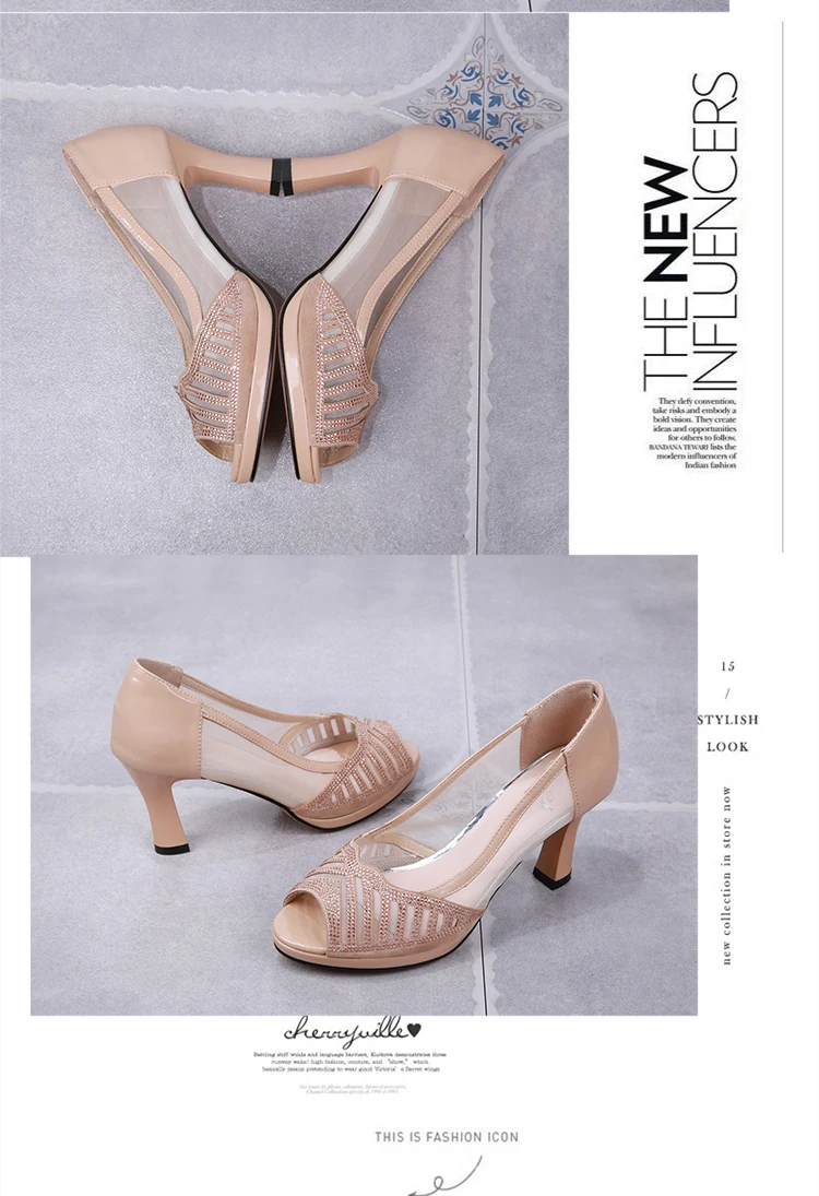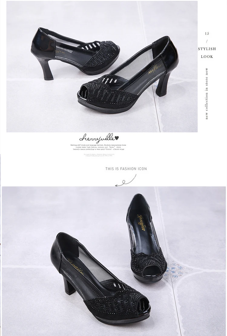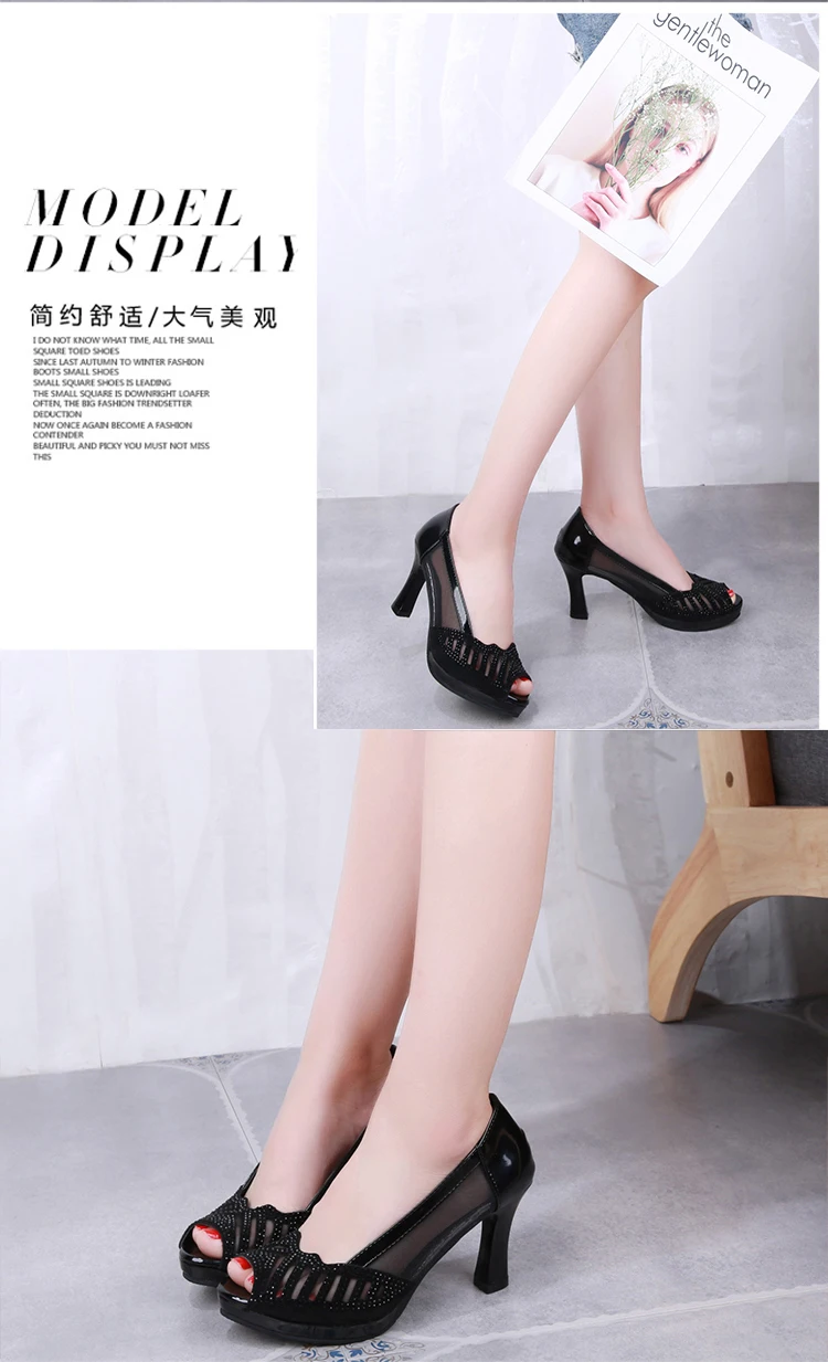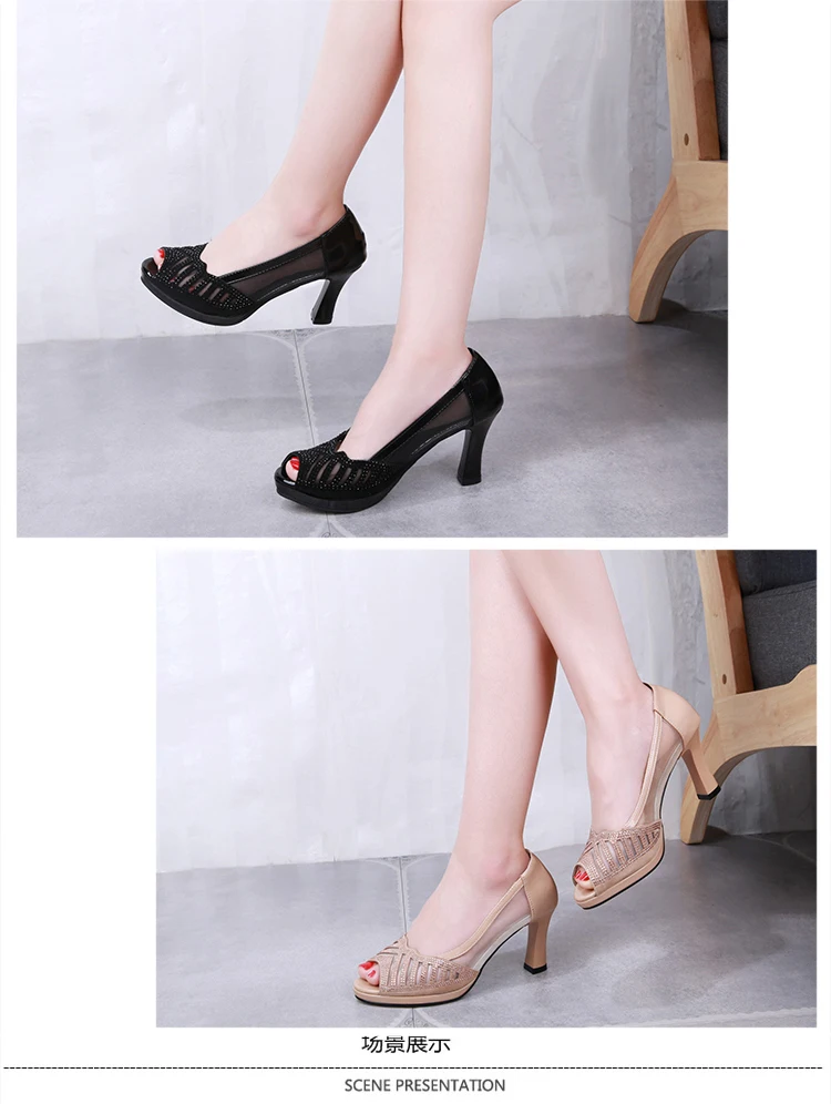 Летние женские туфли-лодочки, модельные туфли с открытым носком, без шнуровки, на высоком каблуке, с вырезами, женские босоножки, офисная обувь для женщин