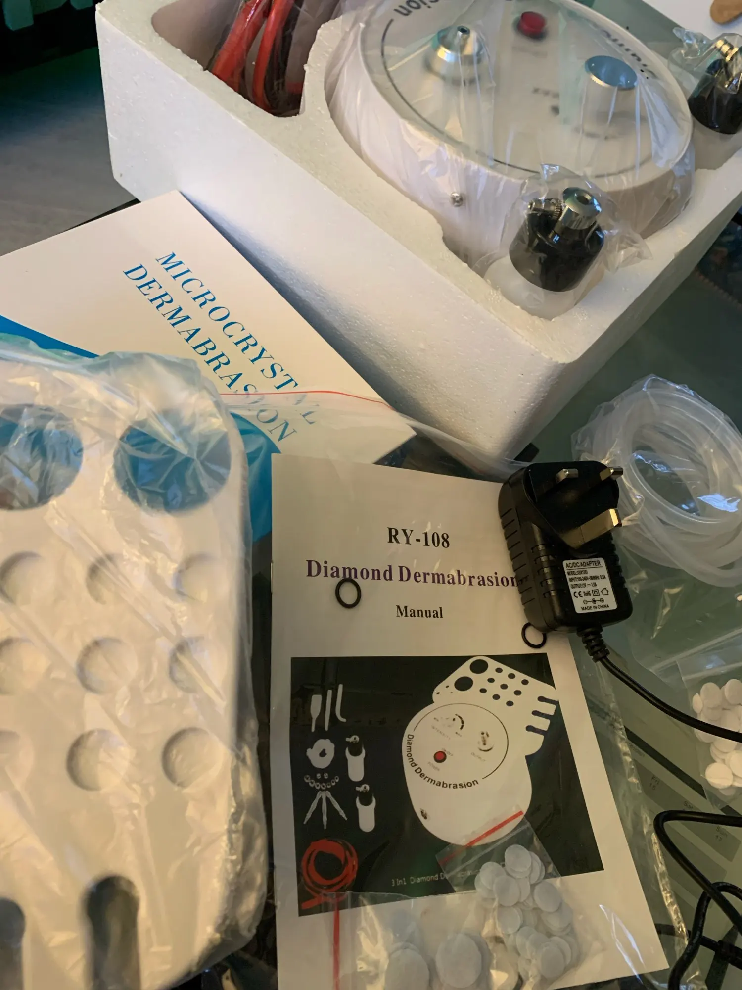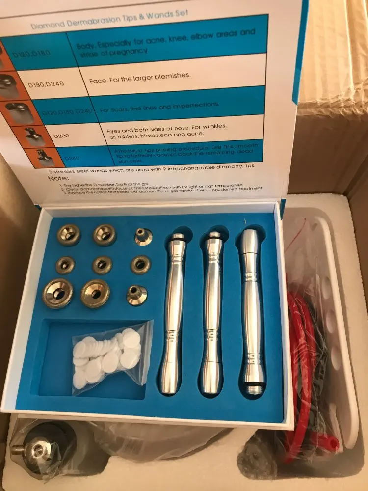 Отличный аппарат. Кожу чистит, шкурит хорошо. Простите за подробные фото, но уж лучше показать работу аппарата.Инструкция есть в Ютубе, просто наберите Diamond Dermabrasion и выйдут несколько роликов, смотрите, учитесь, какие трубки куда подключать. Дошло быстро, посылку доставил курьер. Рекомендую к покупке.